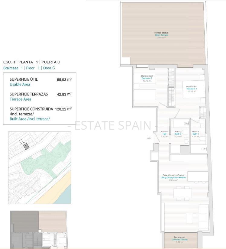 Новые апартаменты недалеко от моря, Коста Бланка. В апартаментах площадью 65 кв.м есть 2 cпальни, 2 санузла, гостиная и кухня.