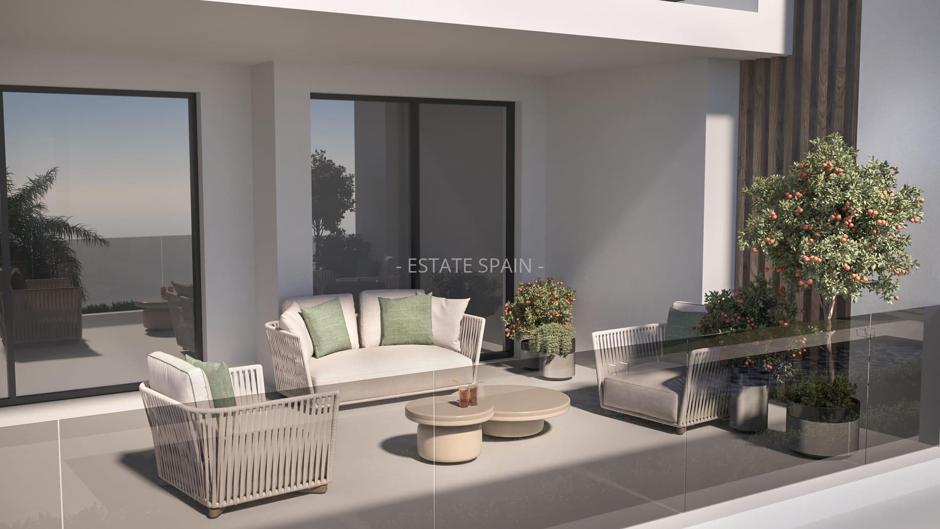 Новые, меблированные апартаменты недалеко от моря в Эстепоне, Андалусия, Коста-дель-Соль. В апартаментах площадью 380 кв.м есть 2 cпальни, 2 санузла, гостиная и кухня. Из окон открывается роскошный вид на море. На территории есть сад.