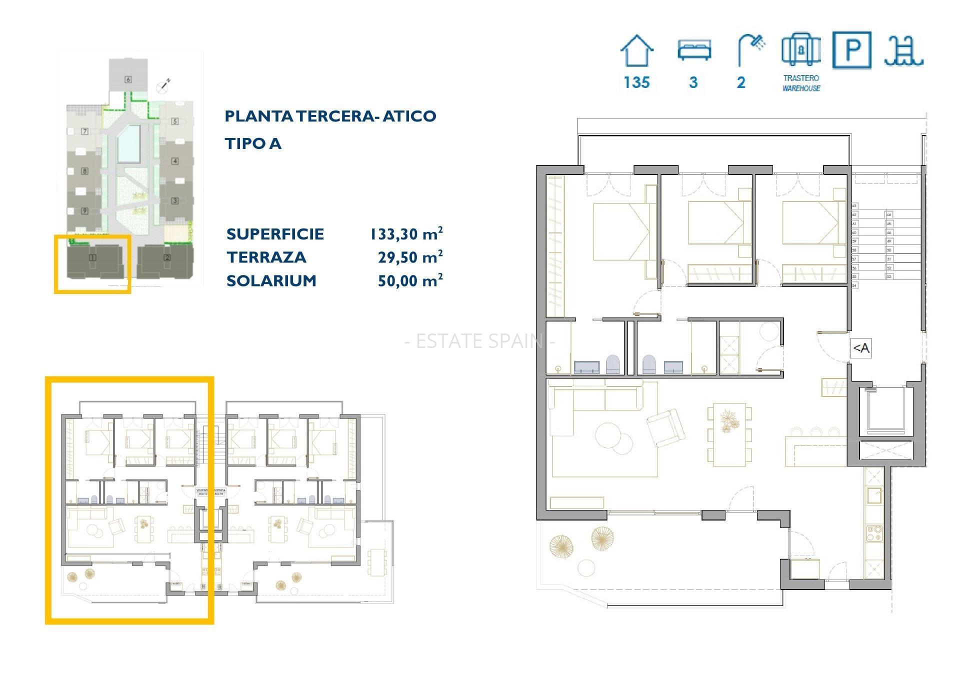 Новые апартаменты в Сан-Педро-дель-Пинатар, Коста Калида. В апартаментах площадью 133 кв.м есть 3 cпальни, 2 санузла, гостиная и кухня.