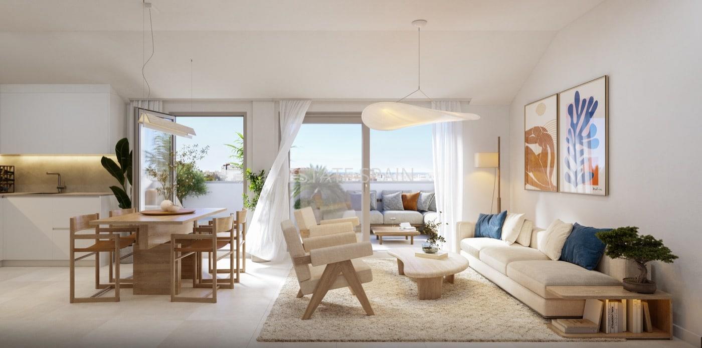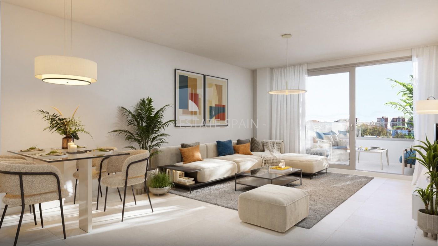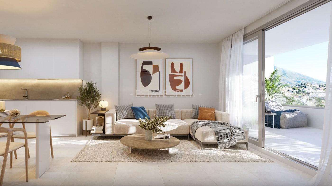 Новые, меблированные апартаменты недалеко от моря в Фуэнхироле, Андалусия, Коста-дель-Соль. В апартаментах площадью 103 кв.м есть 3 cпальни, 2 санузла, гостиная и кухня. Из окон открывается шикарный вид на море. На территории есть сад.