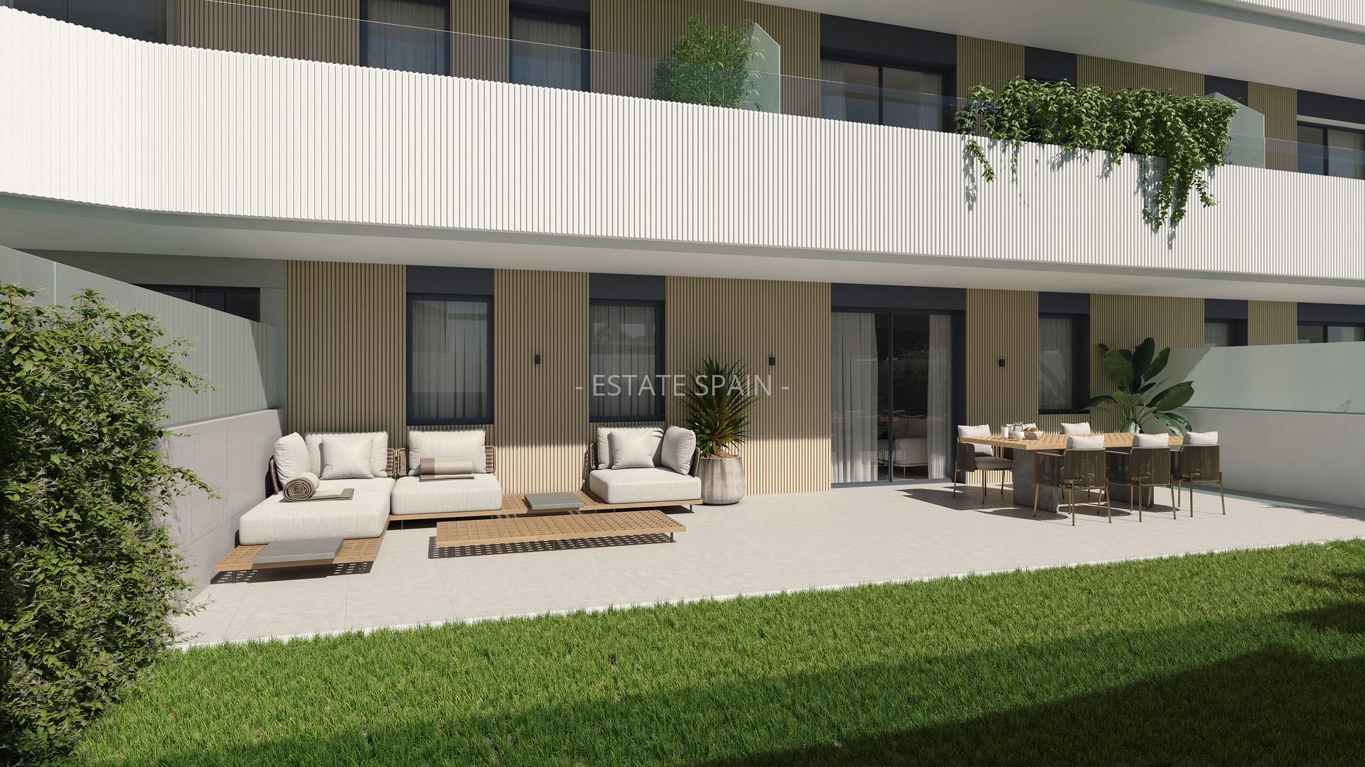 Новые, меблированные апартаменты в Михасе, Андалусия, Коста-дель-Соль. В апартаментах площадью 97 кв.м есть 2 cпальни, 2 санузла, гостиная и кухня. На территории есть сад.