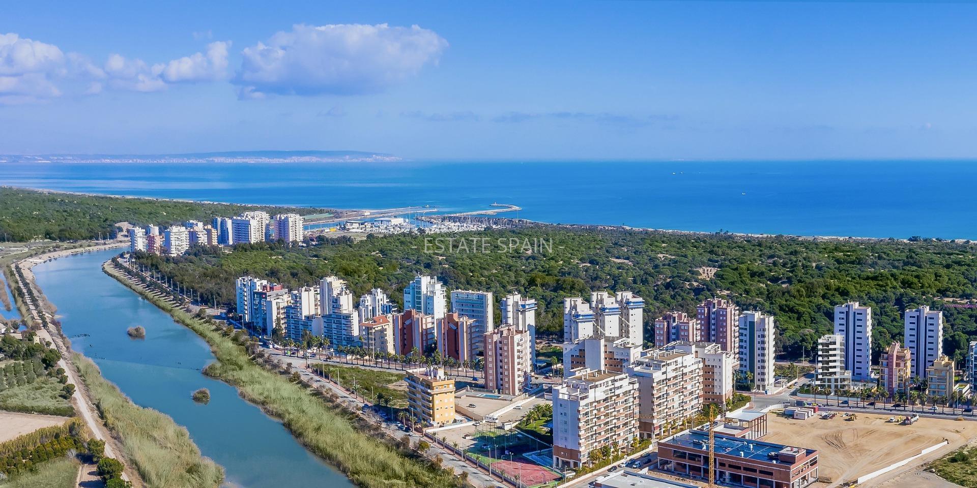 Новые апартаменты недалеко от моря в Гуардамар-дель-Сегура, Коста Бланка. В апартаментах площадью 94 кв.м есть 3 cпальни, 2 санузла, гостиная и кухня. На территории есть сад.