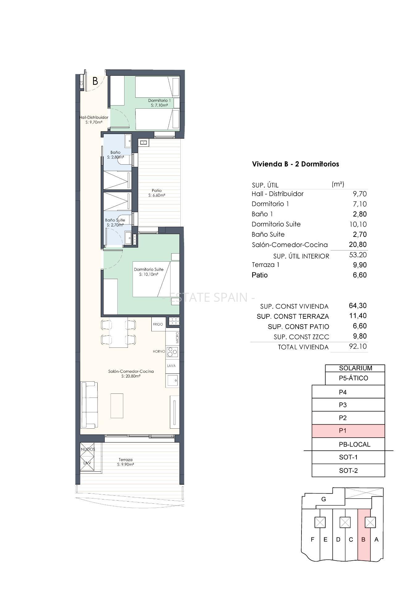 Новые апартаменты недалеко от моря в Торревьехе, Коста Бланка. В апартаментах площадью 64 кв.м есть 2 cпальни, 2 санузла, гостиная и кухня.