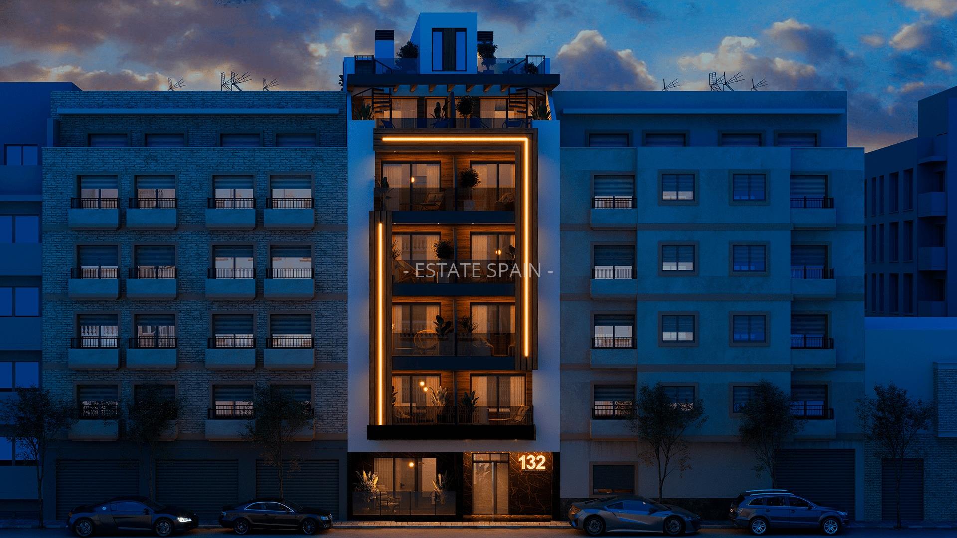Новые апартаменты недалеко от моря в Торревьехе, Коста Бланка. В апартаментах площадью 87 кв.м есть 2 cпальни, 2 санузла, гостиная и кухня.