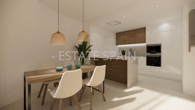 Новые, меблированные апартаменты в Сан Фульхенсио, Коста Бланка. В апартаментах площадью 116 кв.м есть 3 cпальни, 2 санузла, гостиная и кухня. Из окон открывается шикарный вид на море.