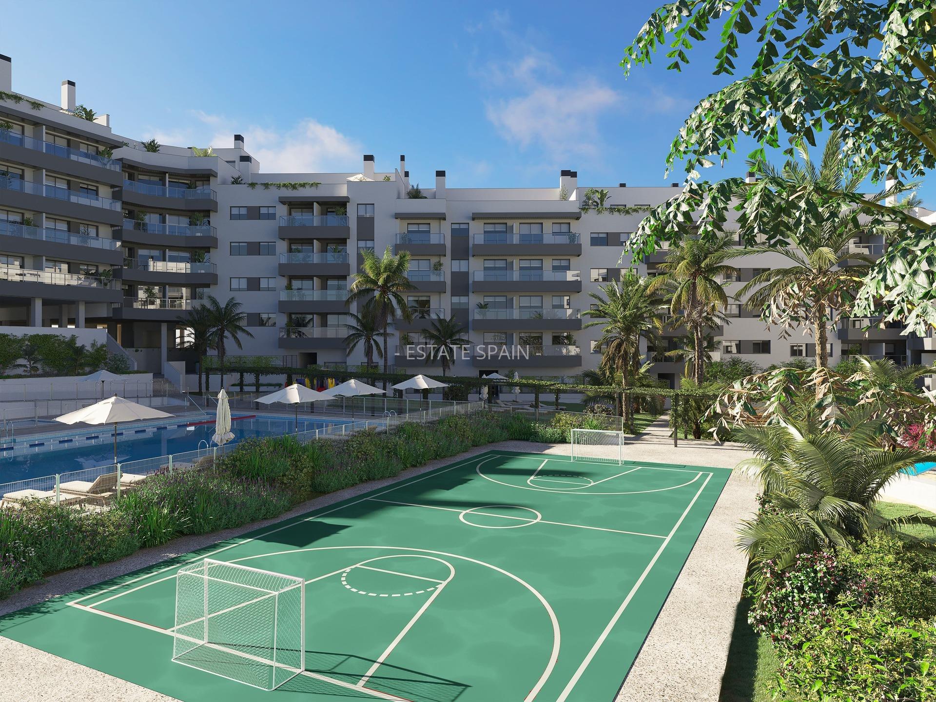 Новые, меблированные апартаменты в Фуэнхироле, Андалусия, Коста-дель-Соль. В апартаментах площадью 82 кв.м есть 2 cпальни, 2 санузла, гостиная и кухня. На территории есть сад.