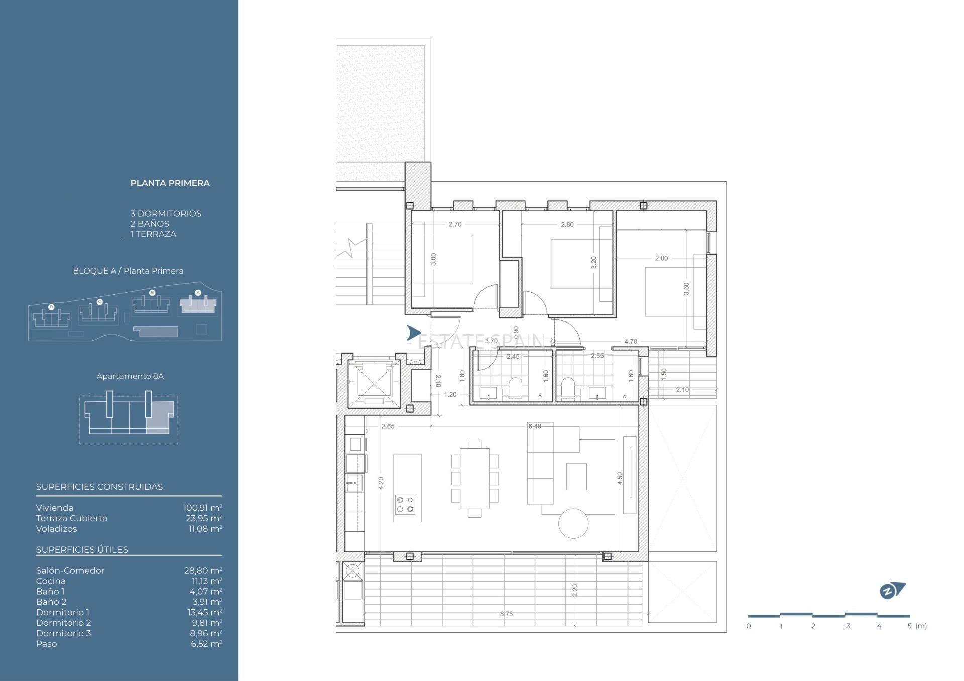Новые апартаменты в Ла-Нусии, Коста Бланка. В апартаментах площадью 106 кв.м есть 3 cпальни, 2 санузла, гостиная и кухня.