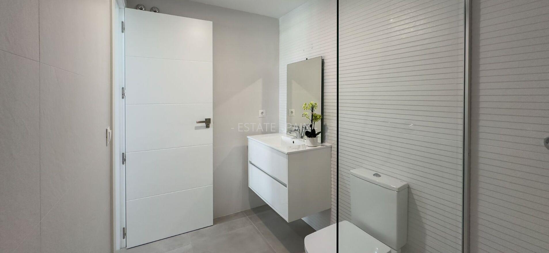 Новые, меблированные апартаменты недалеко от моря в Деэса-де-Кампоамор, Коста Бланка. В апартаментах площадью 102 кв.м есть 2 cпальни, 2 санузла, гостиная и кухня. Из окон открывается чудесный вид на море. На территории есть сад.