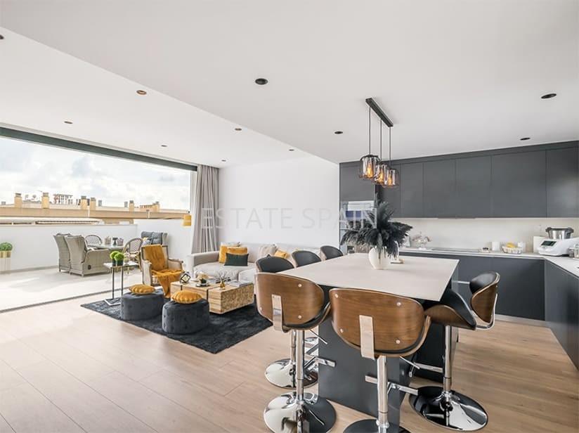 Новые апартаменты недалеко от моря, Балеарские острова, Майорка. В апартаментах площадью 180 кв.м есть 3 cпальни, 3 санузла, гостиная и кухня.