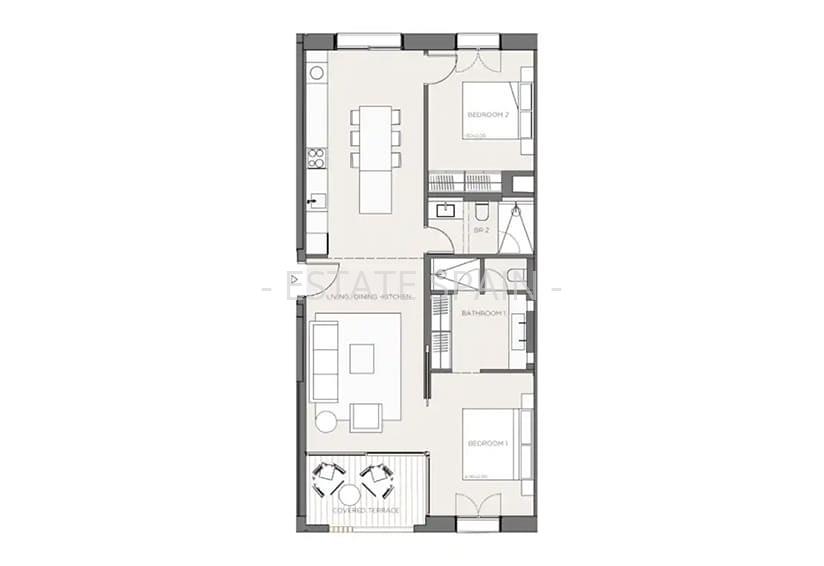 Новые апартаменты в Пальма-де-Майорка, Балеарские острова, Майорка. В апартаментах площадью 81 кв.м есть 2 cпальни, 2 санузла, гостиная и кухня.