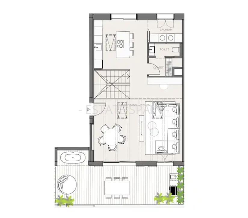 Новые апартаменты в Пальма-де-Майорка, Балеарские острова, Майорка. В апартаментах площадью 135 кв.м есть 3 cпальни, 2 санузла, гостиная и кухня.
