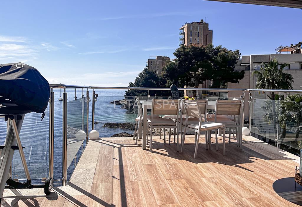 Этот пентхаус — редкое сочетание уединения, уюта и прямого доступа к пляжу. Расположен в небольшой резиденции всего с тремя соседями, он предлагает атмосферу полного покоя, приватности и тишины. Просторная и светлая планировка включает четыре спальни, две полностью оборудованные ванные комнаты, отдельную кухню и гостиную с выходом на террасу. С террасы открывается широкий вид на море, создающий ощущение открытого горизонта и простора. Это пространство идеально подходит как для отдыха, так и для повседневной жизни. В стоимость входит место в подземном гараже, что обеспечивает комфорт и безопасность. Недвижимость находится в престижном районе Кас-Катала, рядом с магазинами, ресторанами, супермаркетами и кафе. До гавани Кала Нова всего несколько минут, а до Пальмы можно добраться за 15–20 минут на машине. Этот пентхаус — отличное решение для тех, кто ищет тихое, светлое жилье у моря в качественной локации.