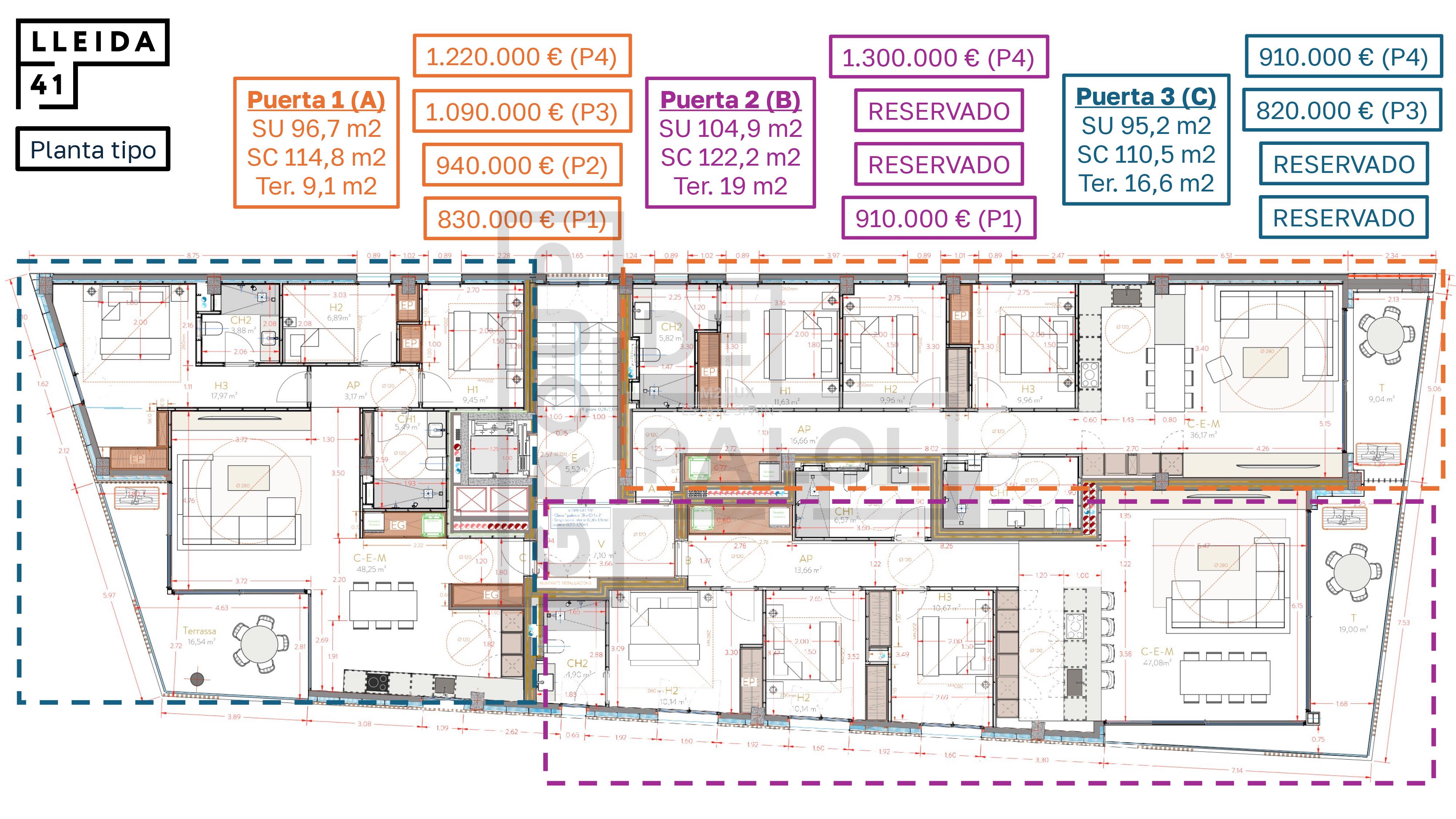 • Desde 790.000 € por un apartamento de 113,6 m² con jardín privado de 135 m²; • Plaza de aparcamiento subterráneo con trastero: 35.000 €; • Plaza de aparcamiento larga sin trastero: 30.000 €; • Plaza de aparcamiento corta sin trastero: 25.000 €.