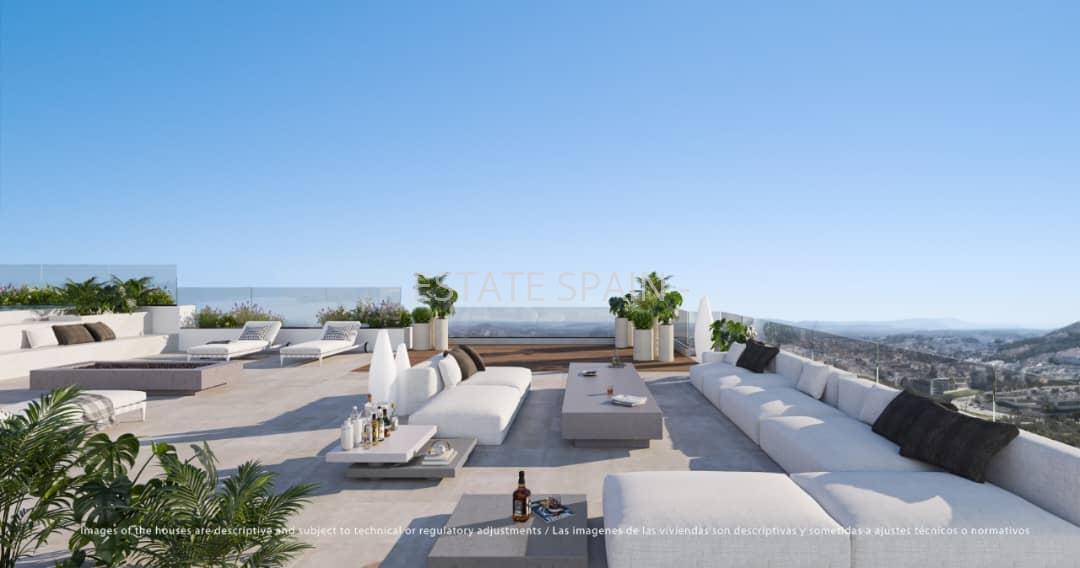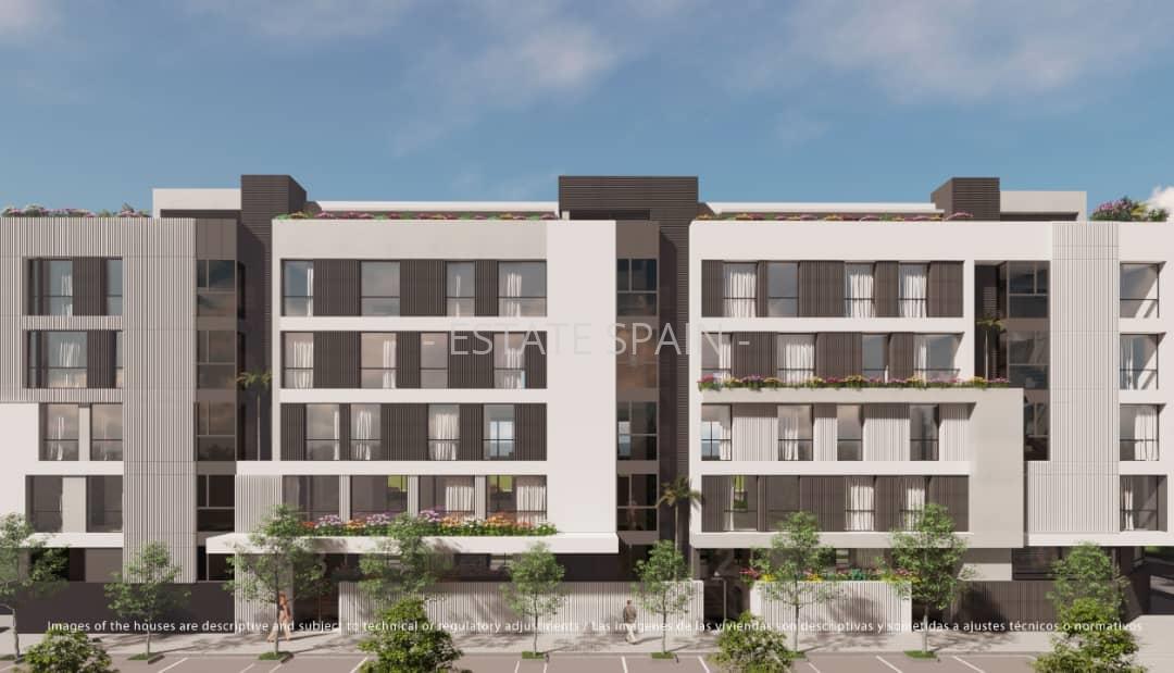 Новые апартаменты в Михасе, Андалусия, Коста-дель-Соль. В апартаментах площадью 68 кв.м есть cпальня, санузел, гостиная и кухня. На территории есть сад.