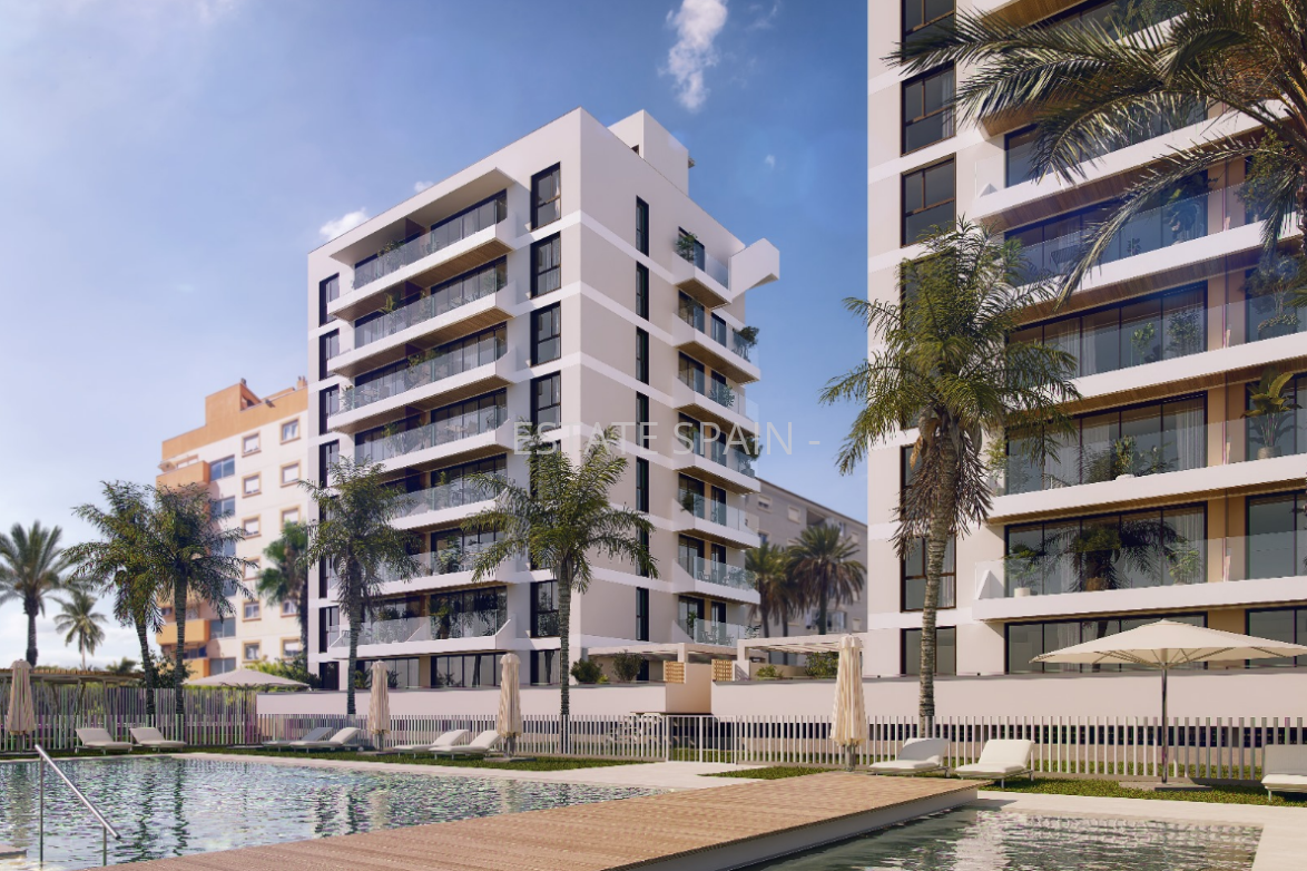 Новые, меблированные апартаменты в Гуардамар-дель-Сегура, Коста Бланка. В апартаментах площадью 90 кв.м есть 2 cпальни, 2 санузла, гостиная и кухня.