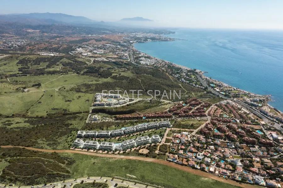 Новые апартаменты недалеко от моря в Эстепоне, Андалусия, Коста-дель-Соль. В апартаментах площадью 153 кв.м есть 3 cпальни, 3 санузла, гостиная и кухня. На территории есть сад.
