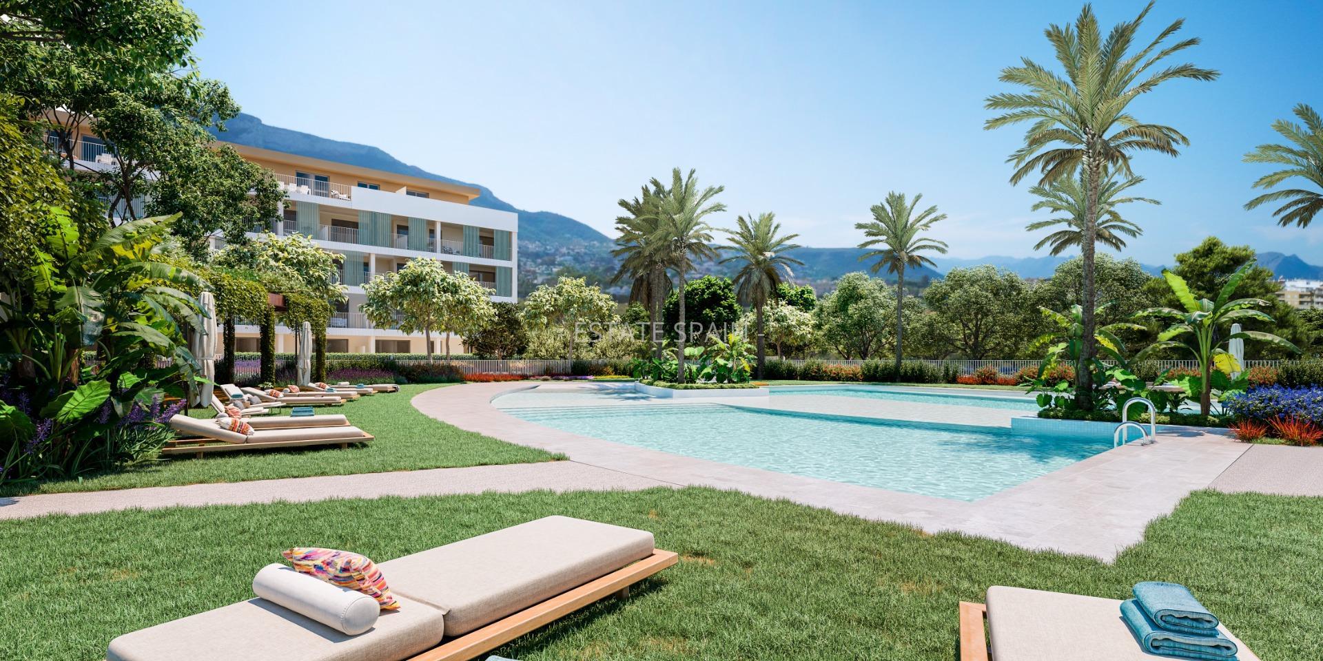 Новые апартаменты недалеко от моря в Дении, Коста Бланка. В апартаментах площадью 142 кв.м есть 4 cпальни, 2 санузла, гостиная и кухня.