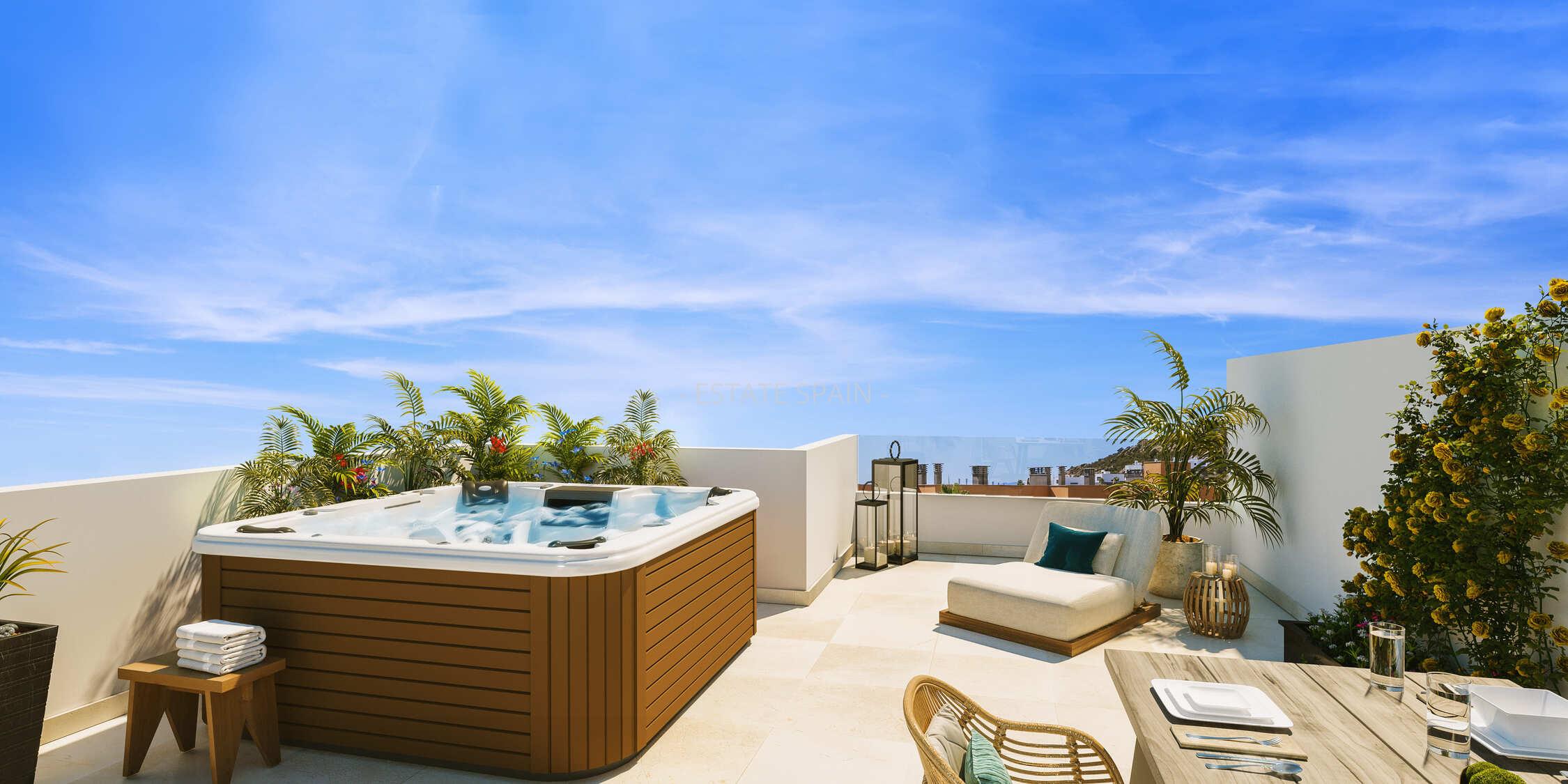 Новые, меблированные апартаменты недалеко от моря в Манильве, Андалусия, Коста-дель-Соль. В апартаментах площадью 127 кв.м есть 3 cпальни, 2 санузла, гостиная и кухня. Из окон открывается замечательный вид на море. На территории есть сад.