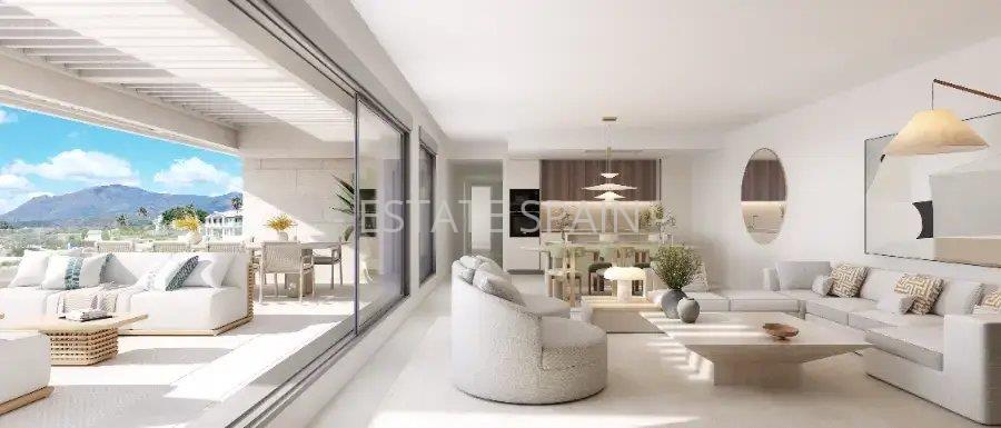 Новые, меблированные апартаменты в Эстепоне, Андалусия, Коста-дель-Соль. В апартаментах площадью 191 кв.м есть 3 cпальни, 2 санузла, гостиная и кухня. Из окон открывается волшебный вид на море. На территории есть сад.