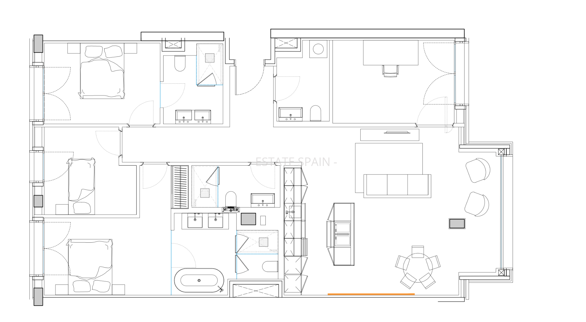 Новые, меблированные апартаменты в Пальма-де-Майорка, Балеарские острова, Майорка. В апартаментах площадью 99 кв.м есть 2 cпальни, 2 санузла, гостиная и кухня.
