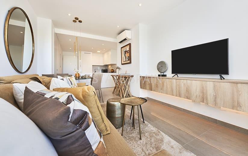 Новые апартаменты в Феланиче, Балеарские острова, Майорка. В апартаментах площадью 61 кв.м есть 2 cпальни, 2 санузла, гостиная и кухня.