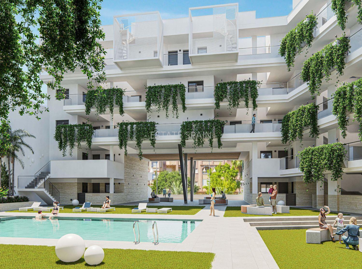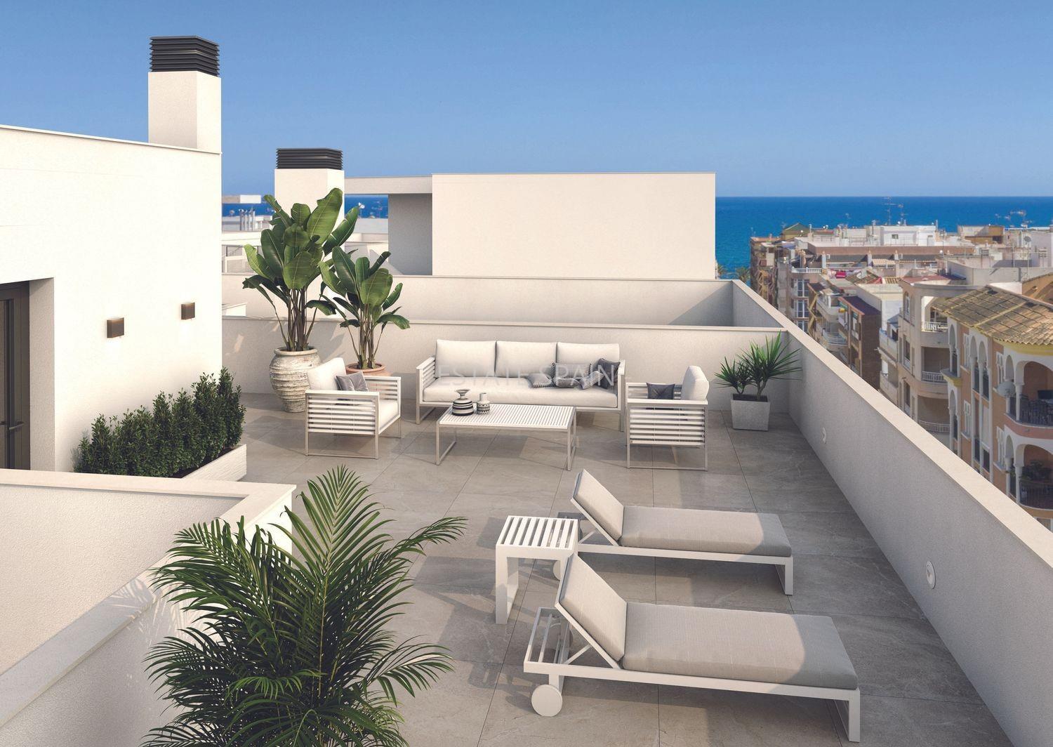 Новые, меблированные апартаменты в Торревьехе, Коста Бланка. В апартаментах площадью 95 кв.м есть 2 cпальни, 2 санузла, гостиная и кухня.