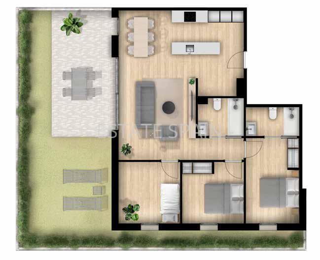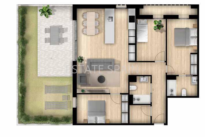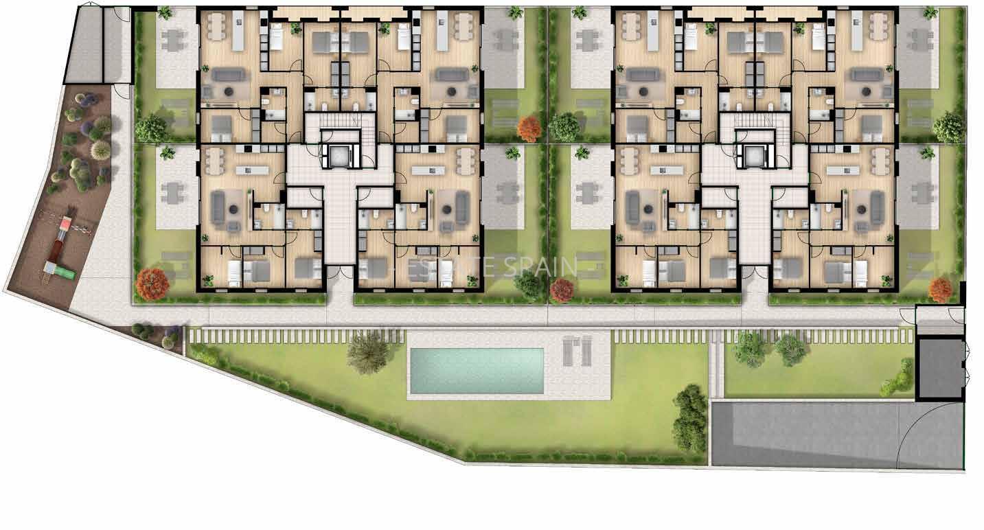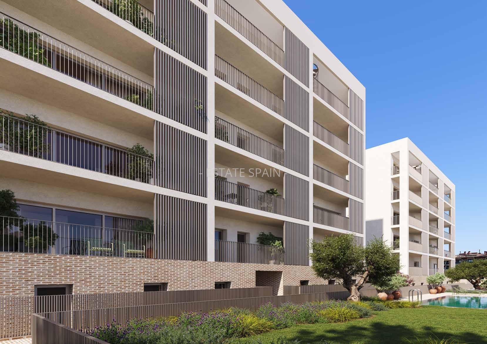 Новые, меблированные апартаменты недалеко от моря, Каталония, Коста Брава. В апартаментах площадью 79 кв.м есть 2 cпальни, 2 санузла, гостиная и кухня. На территории есть сад.