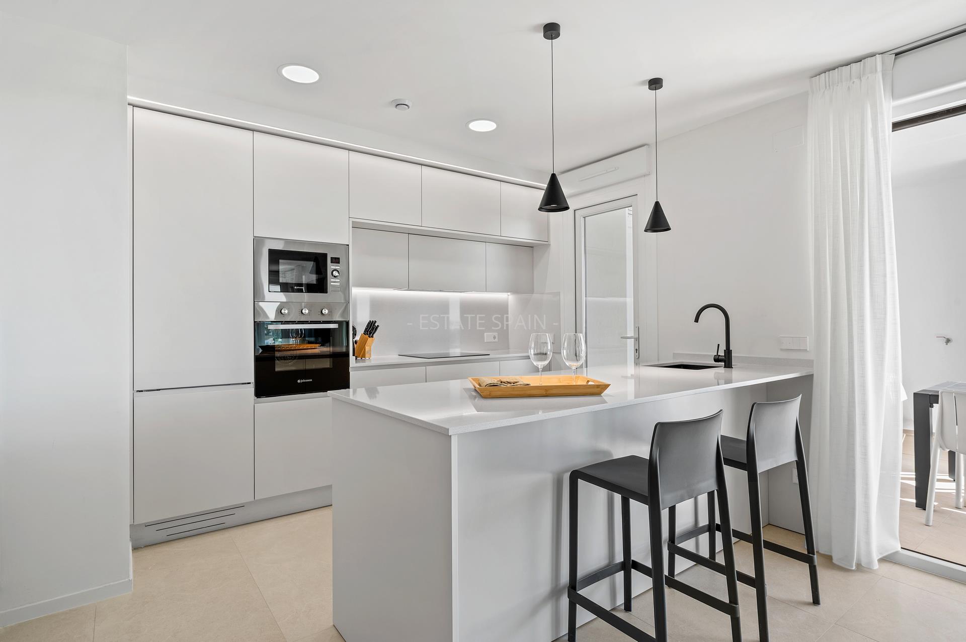 Новые, меблированные апартаменты в Лос-Алькасарес, Коста Калида. В апартаментах площадью 101 кв.м есть 3 cпальни, 2 санузла, гостиная и кухня. Из окон открывается сказочный вид на море. На территории есть сад.