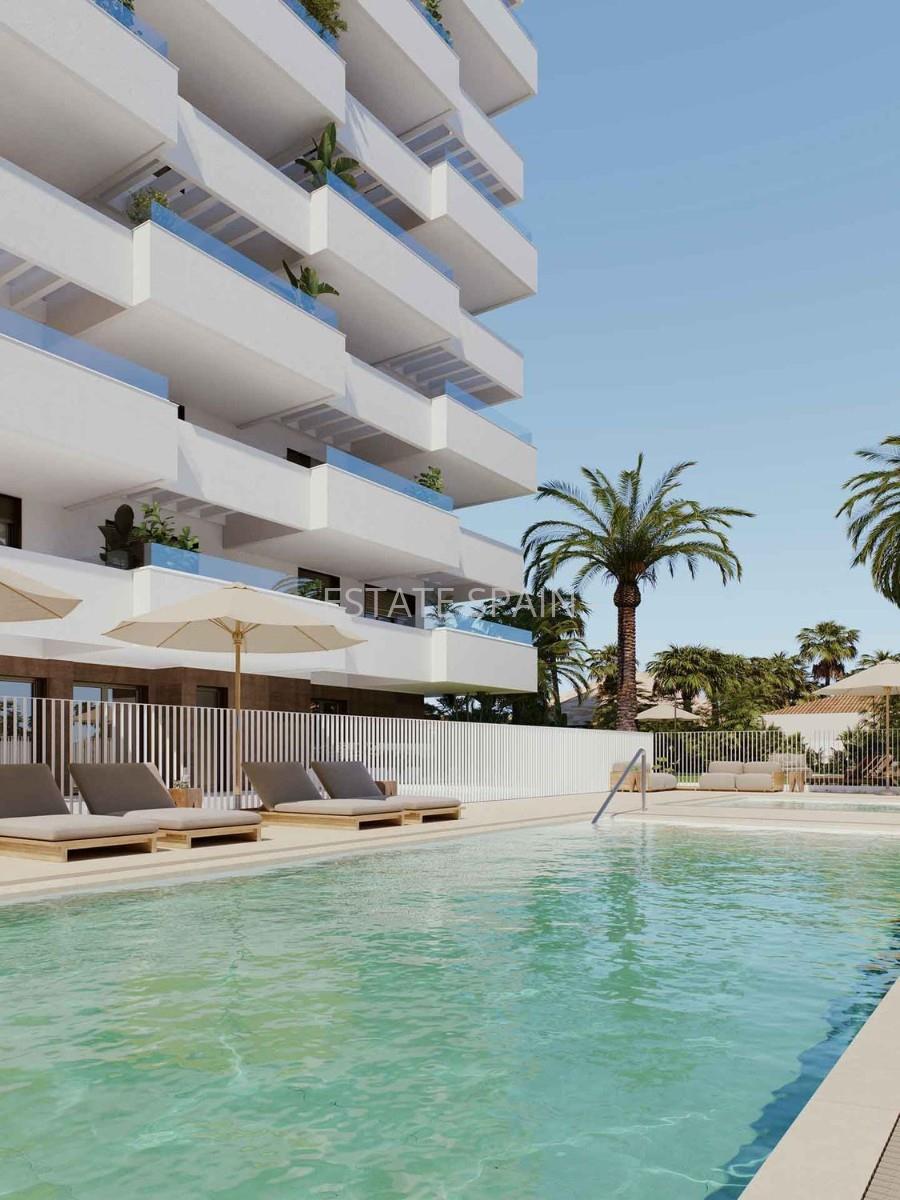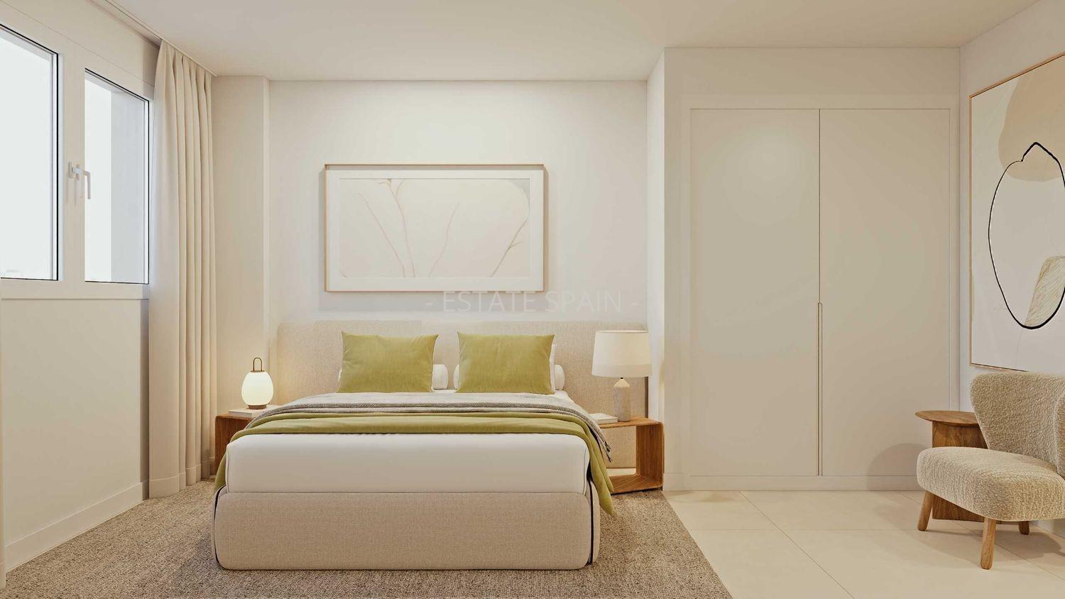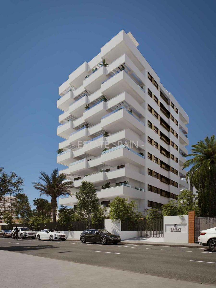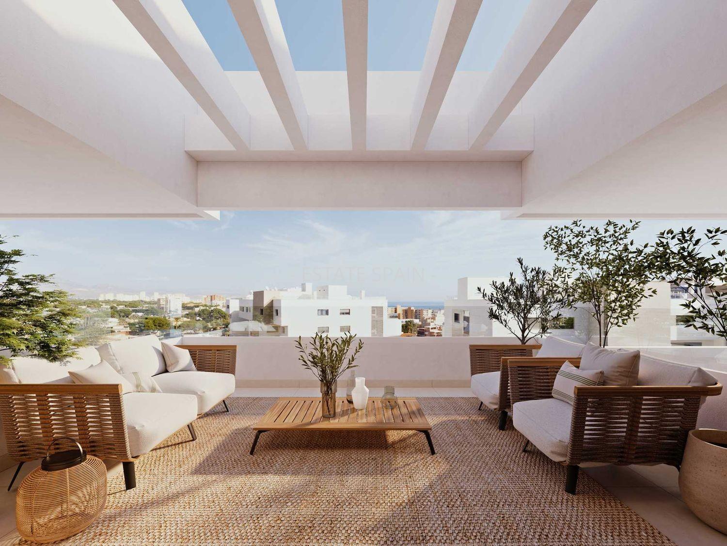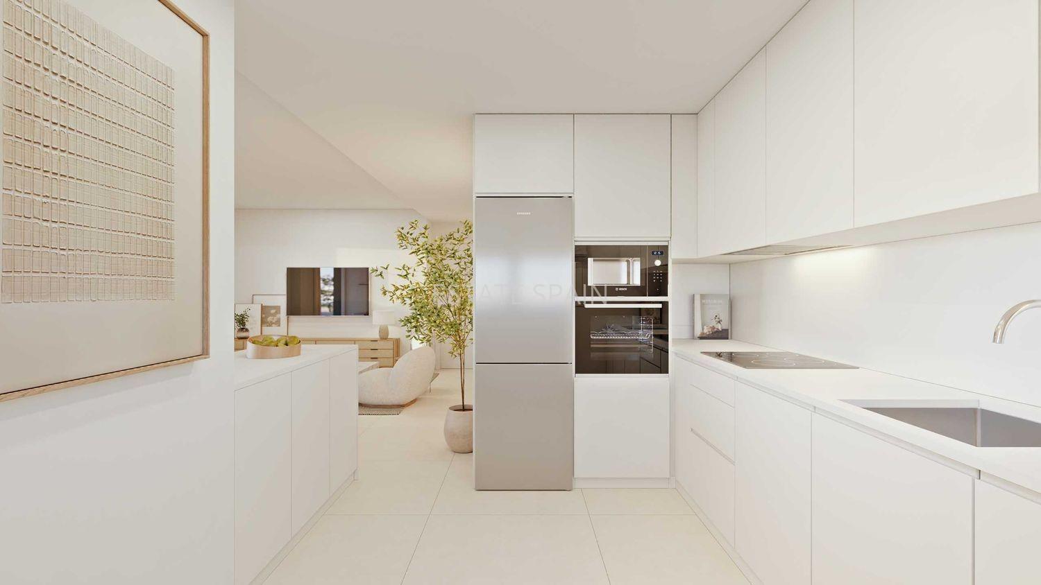 Новые апартаменты недалеко от моря в Аликанте, Коста Бланка. В апартаментах площадью 117 кв.м есть 2 cпальни, 2 санузла, гостиная и кухня.