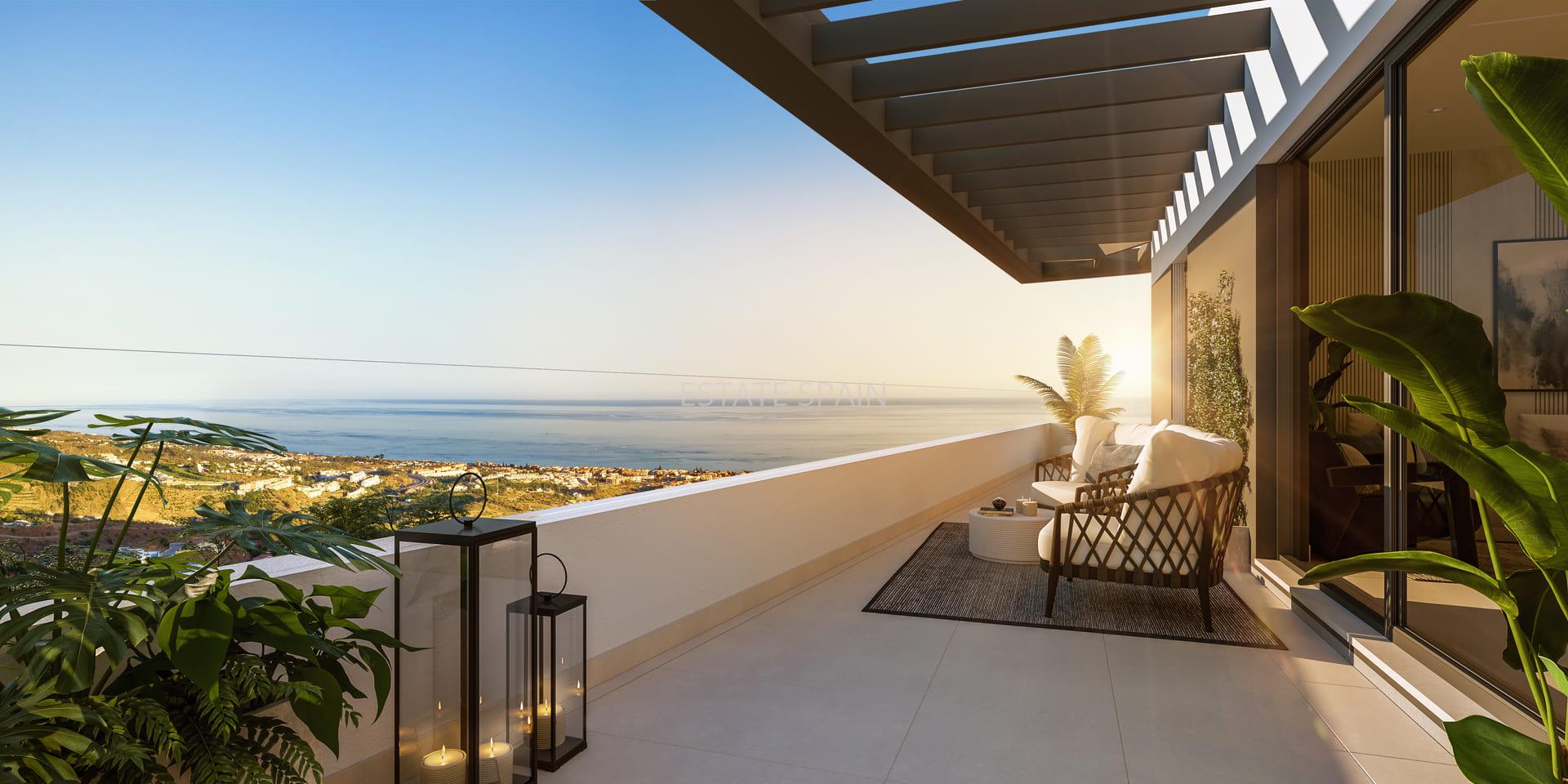 Новое, меблированное бунгало, Андалусия, Коста-дель-Соль. В бунгало площадью 111 кв.м есть 2 cпальни, 2 санузла, гостиная и кухня. Из окон открывается красивый вид на море. На территории есть сад.