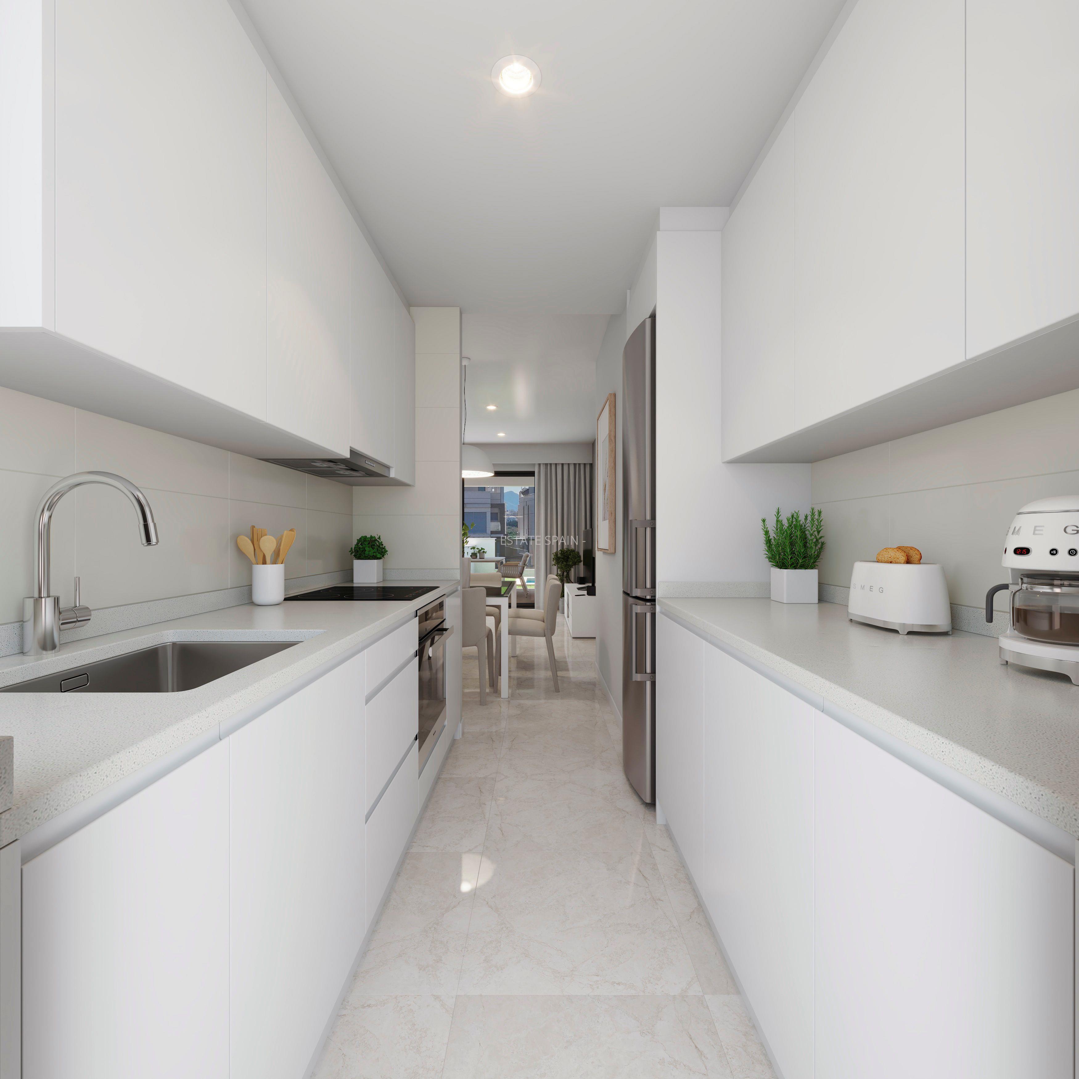 Новое, меблированное бунгало недалеко от моря в Масаррон, Коста Калида. В бунгало площадью 77 кв.м есть 2 cпальни, 2 санузла, гостиная и кухня. Из окон открывается удивительный вид на море. На территории есть сад.