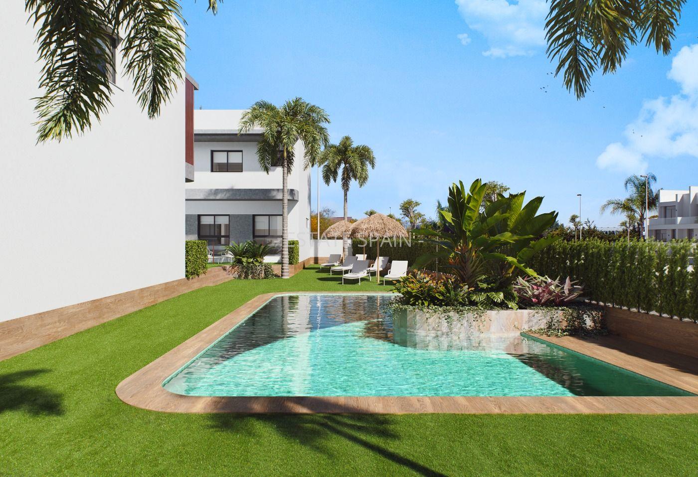 Новое бунгало в Пилар-де-ла-Орадада, Коста Бланка. В бунгало площадью 70 кв.м есть 2 cпальни, 2 санузла, гостиная и кухня. На территории есть сад.