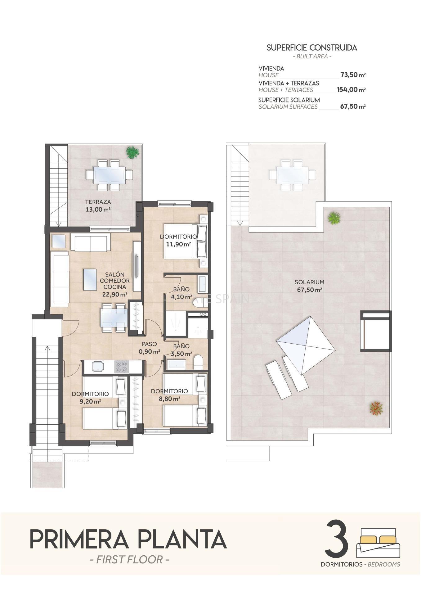 Новое бунгало в Сан-Мигель-де-Салинас, Коста Бланка. В бунгало площадью 73 кв.м есть 3 cпальни, 2 санузла, гостиная и кухня.
