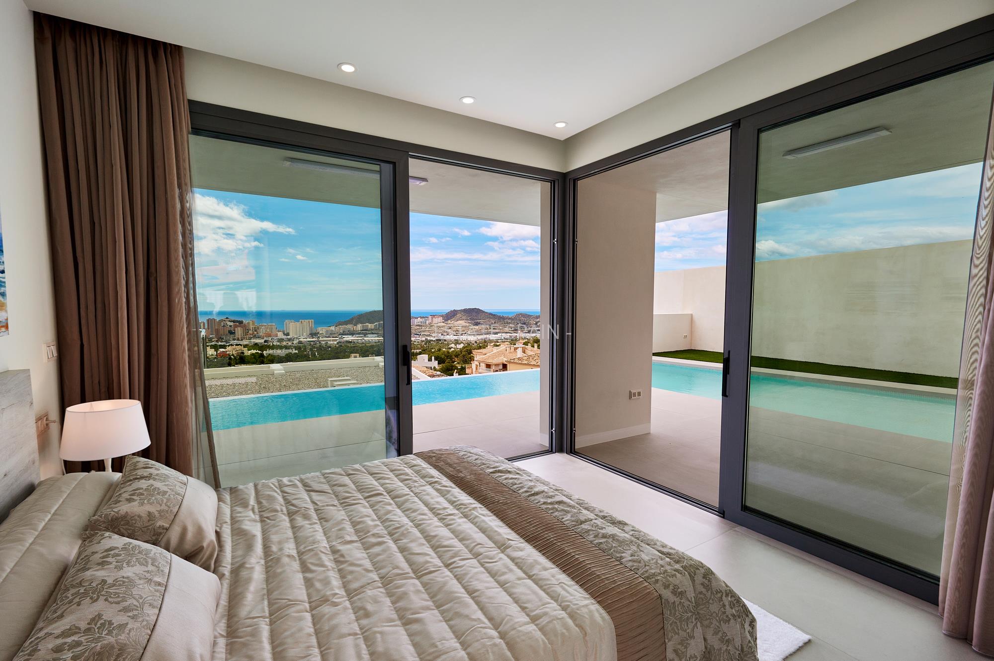 Четыре современные и роскошные виллы с уникальным видом на город Бенидорм и всё его побережье. В каждом доме есть зона отдыха, предназначенная для максимального удобства и комфорта владельцев. Виллы современного геометрического дизайна состоят из цокольного, первого и второго этажа, с эксклюзивным оснащением и материалами высшего качества. Всё это позволяет наслаждаться большими открытыми пространствами, обеспечивая дом естественным освещением и простором.