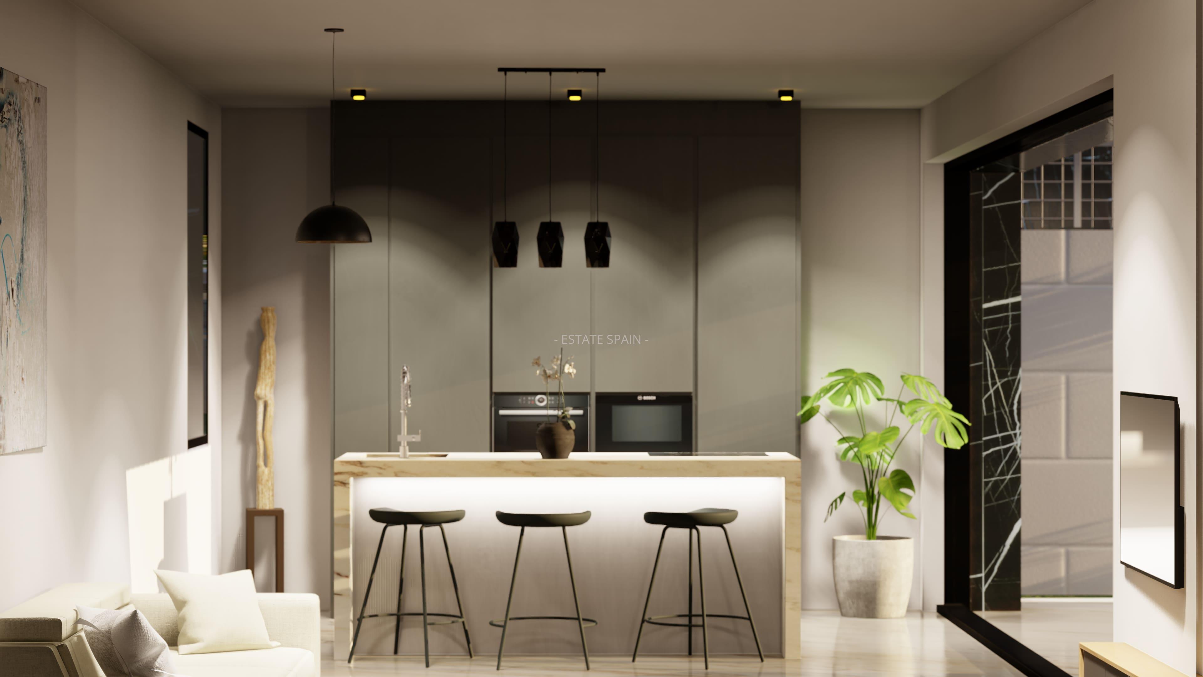 Новая, меблированная вилла в Альгорфа, Коста Бланка. В вилле площадью 103 кв.м есть 3 cпальни, санузел, гостиная и кухня. На территории есть сад.