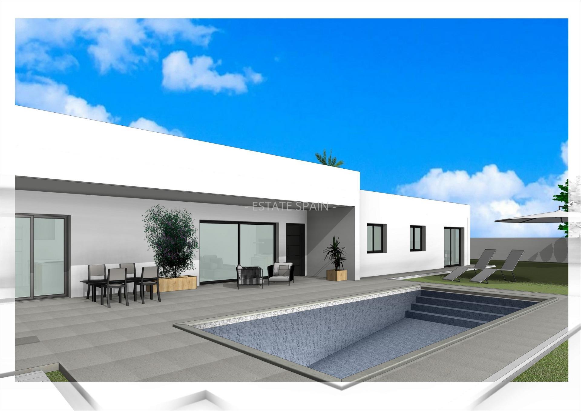 Новая вилла в Аспе, Коста Бланка. В вилле площадью 164 кв.м есть 3 cпальни, 2 санузла, гостиная и кухня. На территории есть сад.