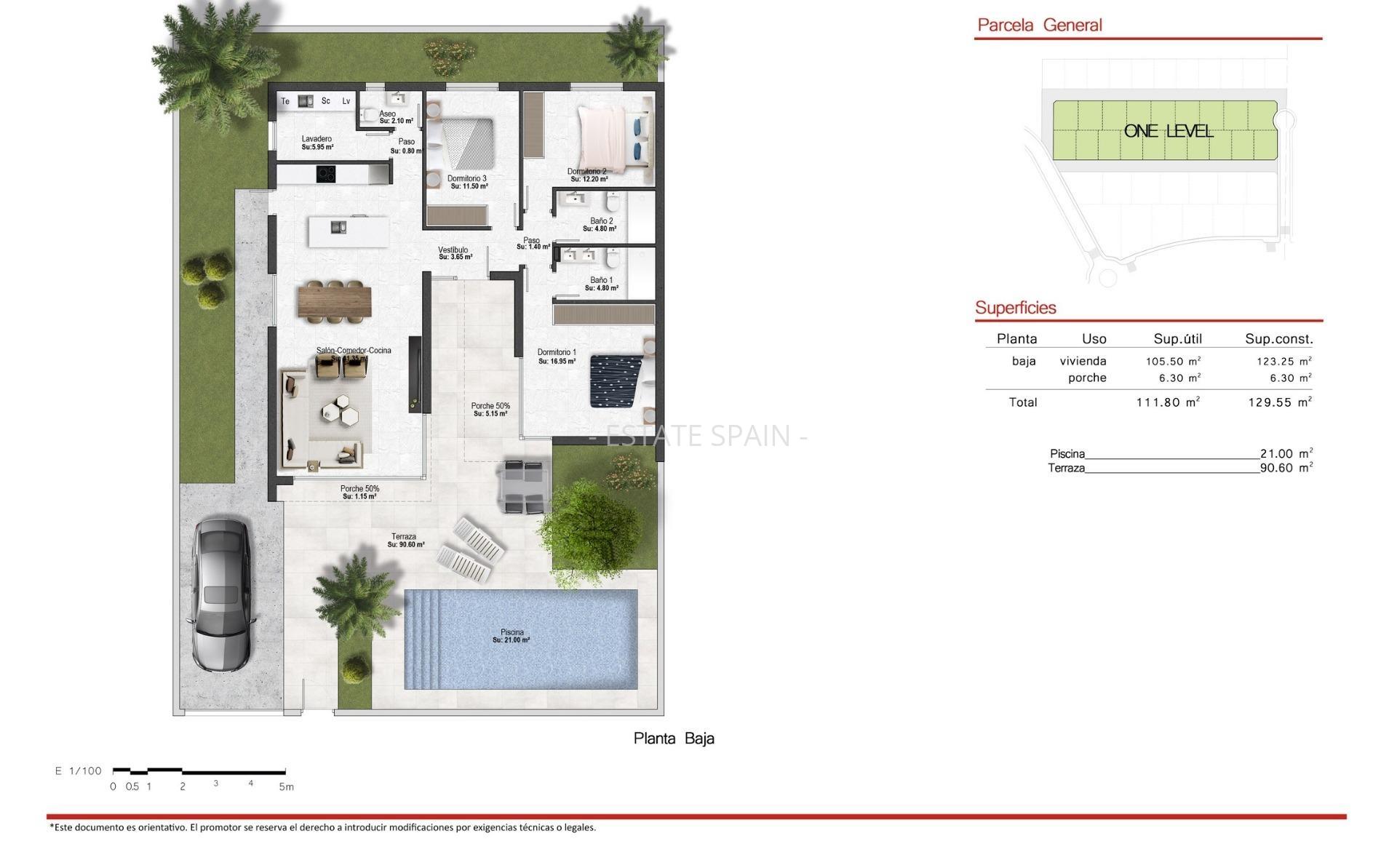 Новая вилла в Мурсии, Коста Калида. В вилле площадью 123 кв.м есть 3 cпальни, 2 санузла, гостиная и кухня. На территории есть сад.