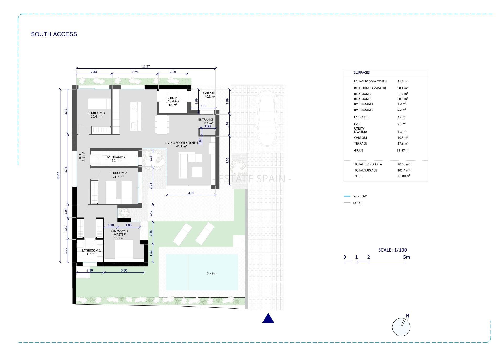 Новая вилла в Мурсии, Коста Калида. В вилле площадью 107 кв.м есть 3 cпальни, 2 санузла, гостиная и кухня. На территории есть сад.