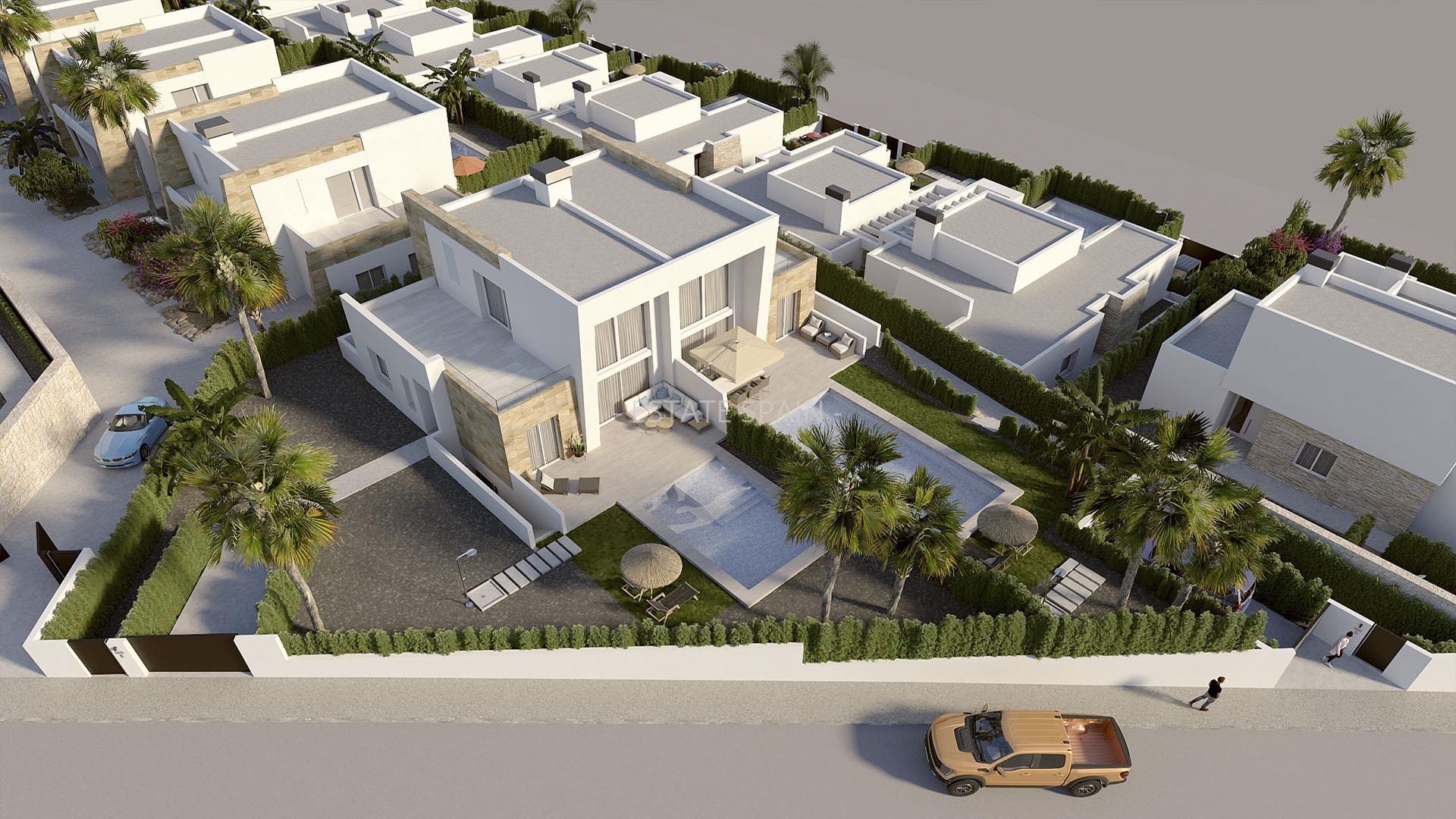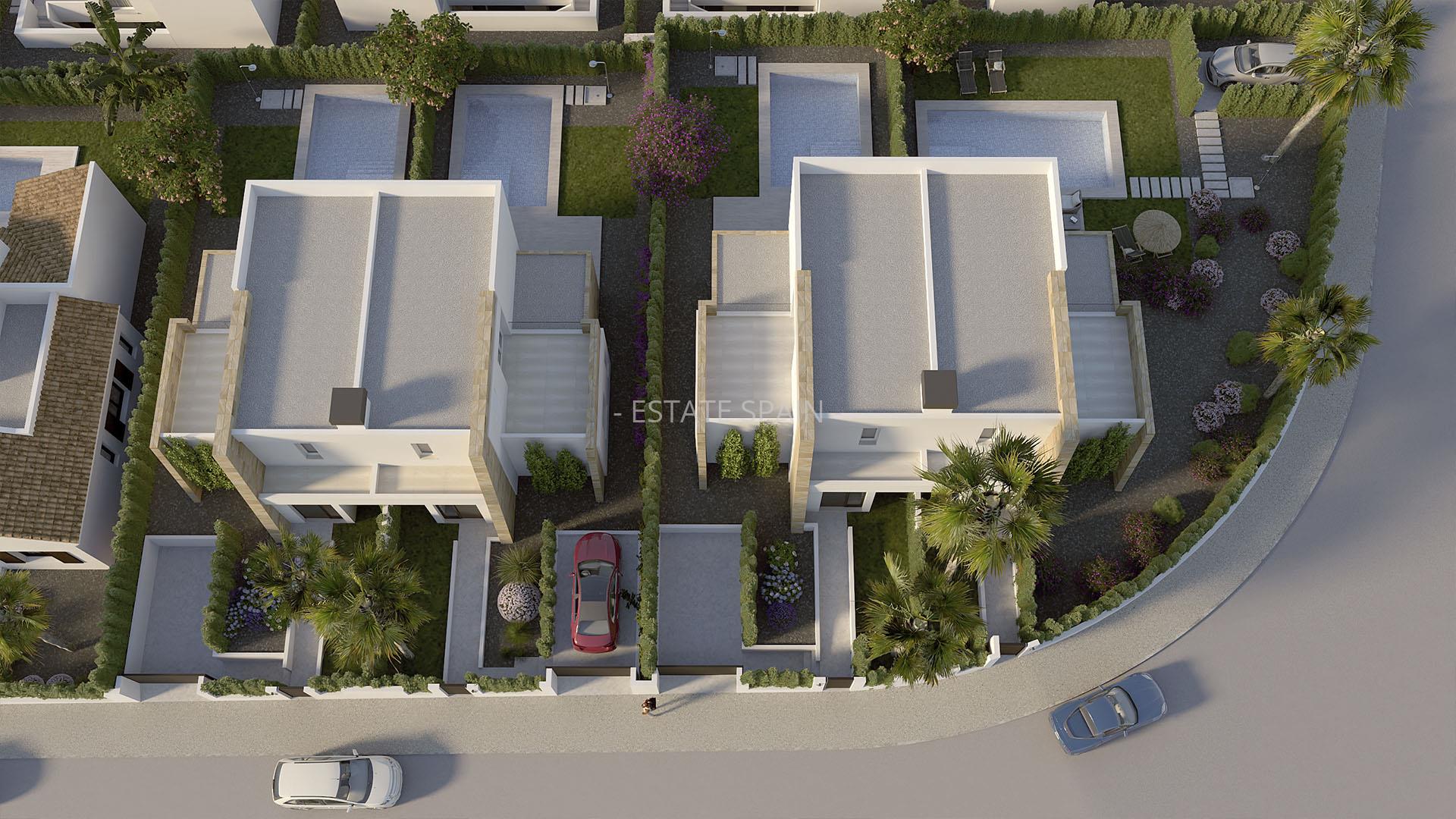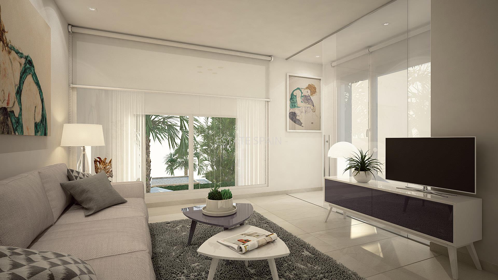 Новая вилла в Альгорфа, Коста Бланка. В вилле площадью 108 кв.м есть 3 cпальни, 2 санузла, гостиная и кухня. На территории есть сад.