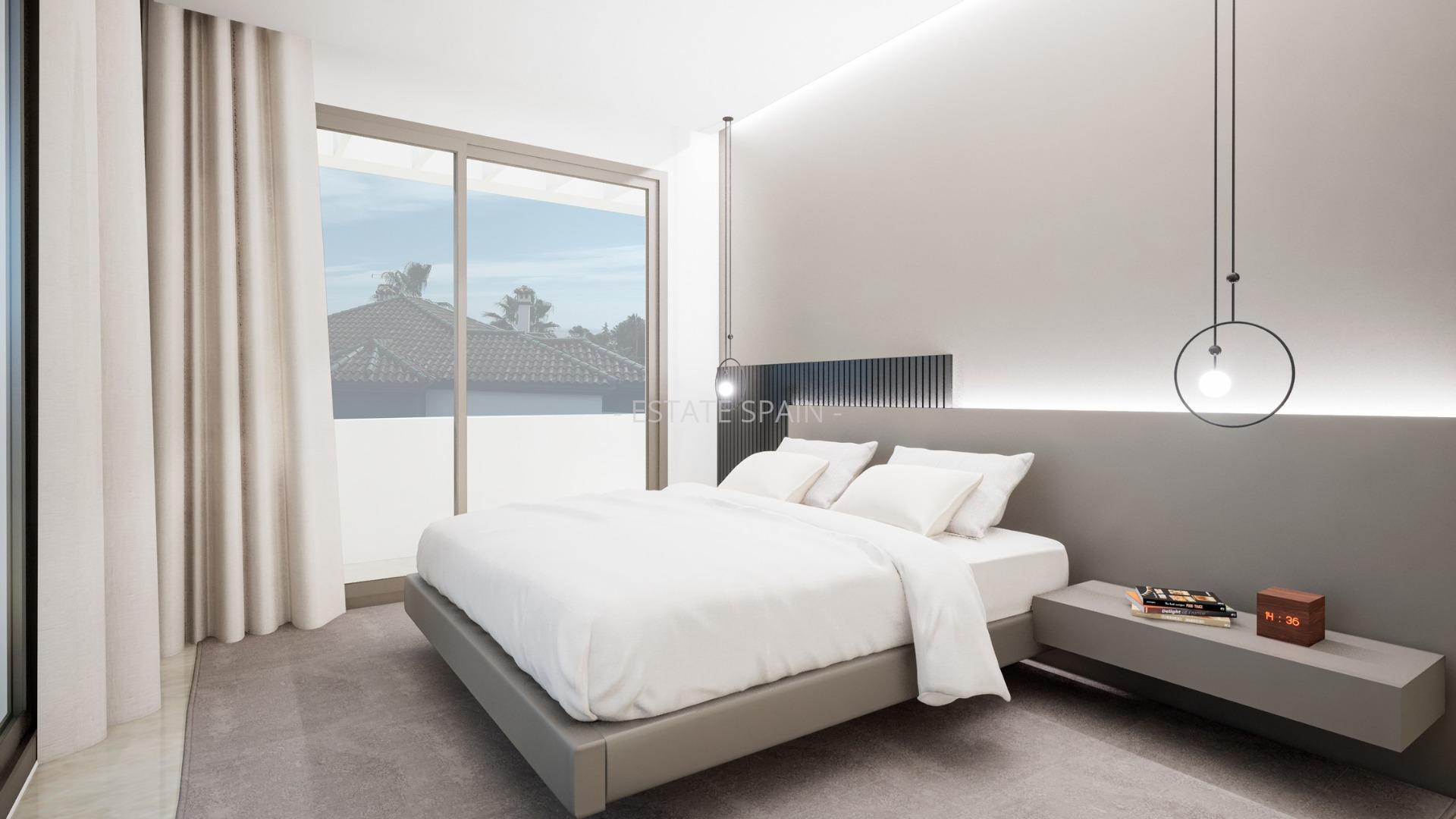 Новая, меблированная вилла недалеко от моря в Эстепоне, Андалусия, Коста-дель-Соль. В вилле площадью 193 кв.м есть 4 cпальни, 3 санузла, гостиная и кухня. Из окон открывается чудный вид на море.