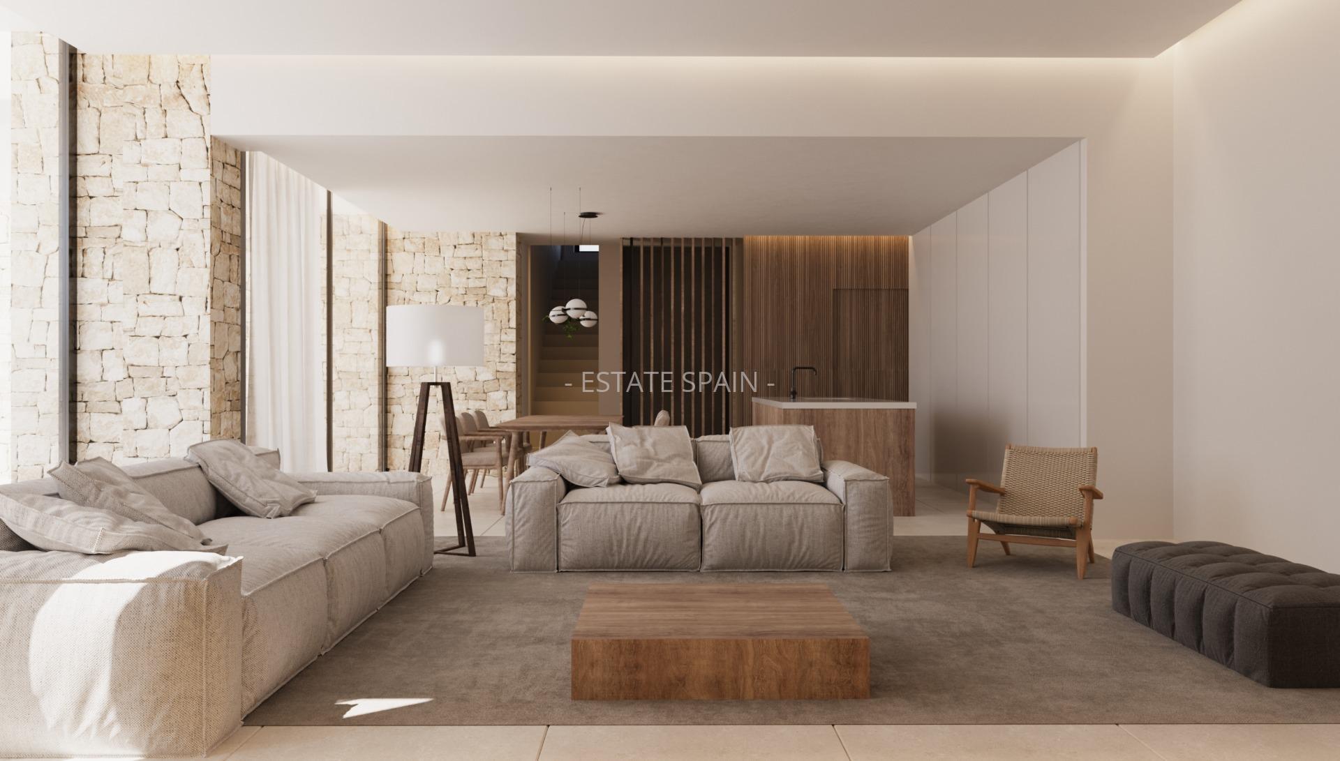 Новая вилла недалеко от моря в Дении, Коста Бланка. В вилле площадью 224 кв.м есть 3 cпальни, 3 санузла, гостиная и кухня. На территории есть сад.