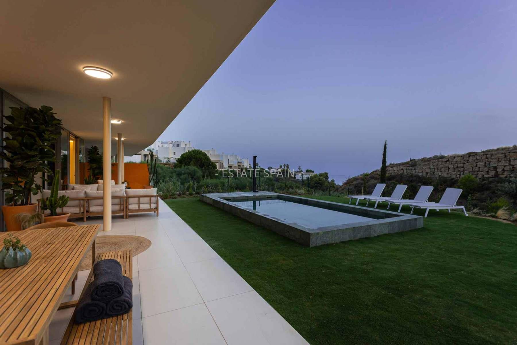 Новая вилла в Фуэнхироле, Андалусия, Коста-дель-Соль. В вилле площадью 130 кв.м есть 3 cпальни, 2 санузла, гостиная и кухня. Из окон открывается восхитительный вид на море. На территории есть сад.