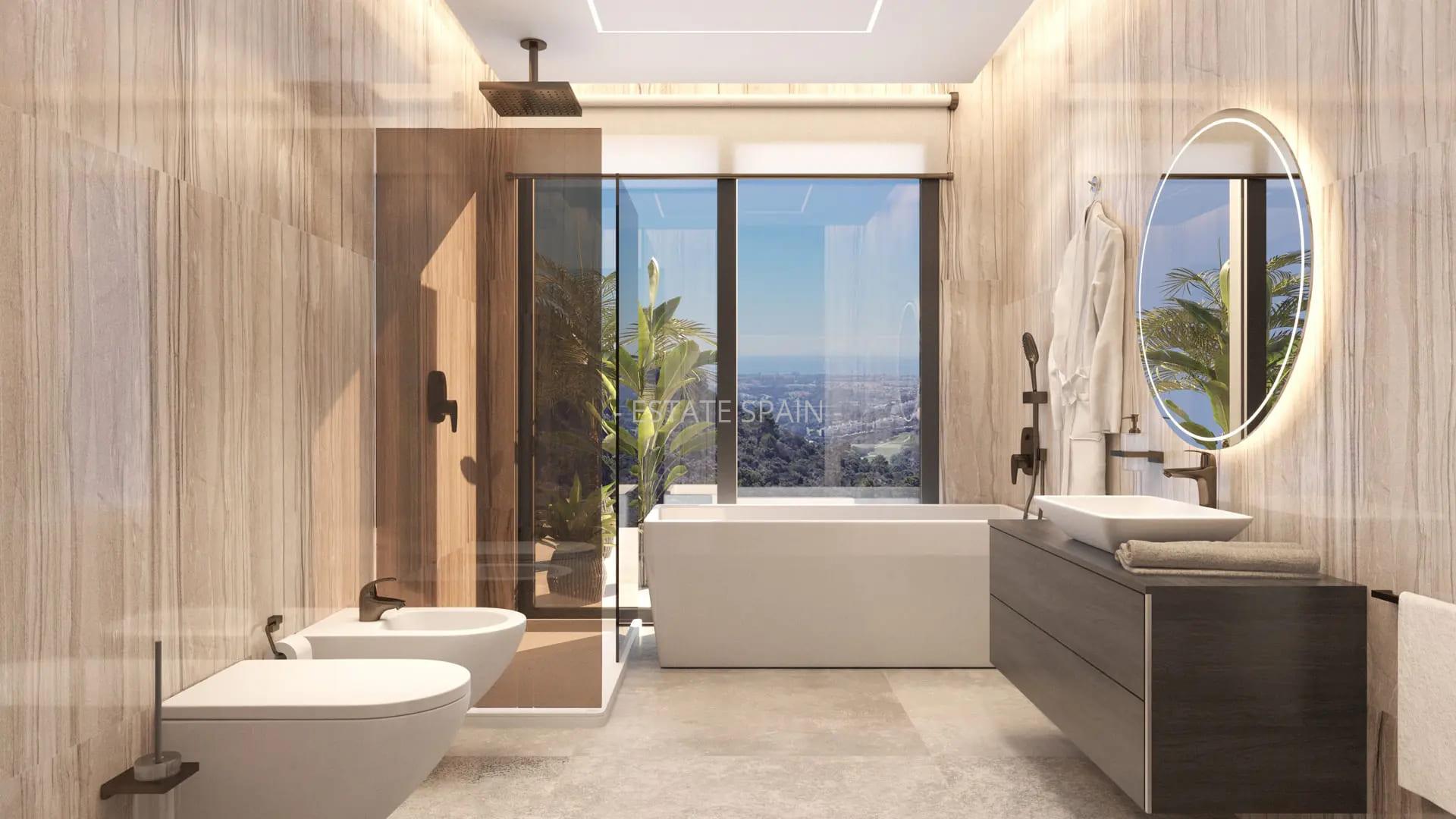 Новая, меблированная вилла в Бенаависе, Андалусия, Коста-дель-Соль. В вилле площадью 3035 кв.м есть 6 спальных комнат, 7 санузлов, гостиная и кухня. Из окон открывается замечательный вид на море.