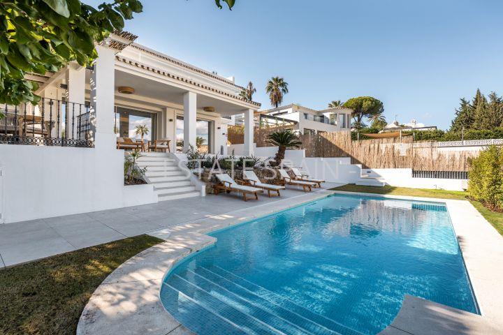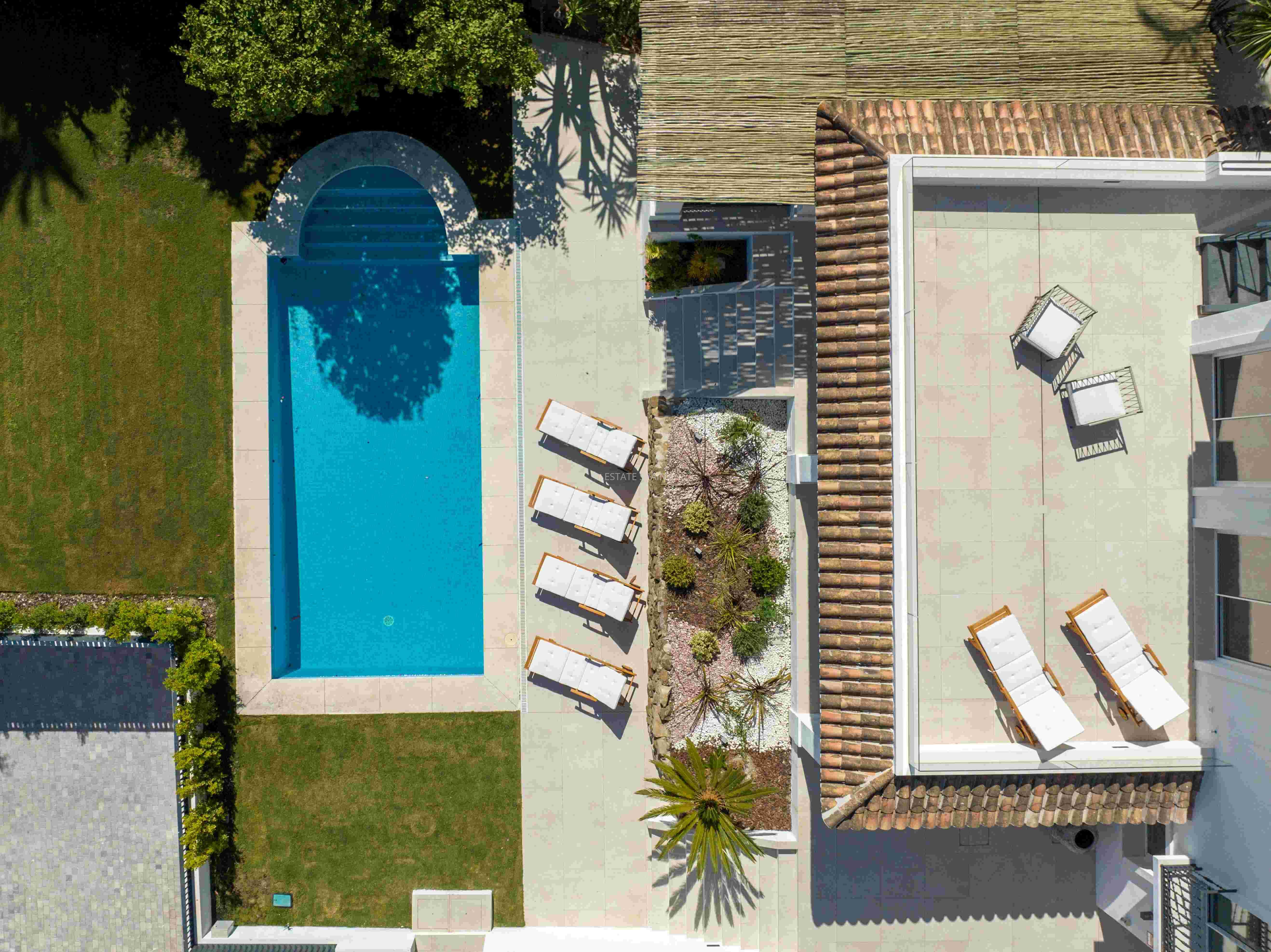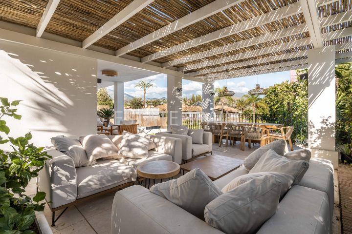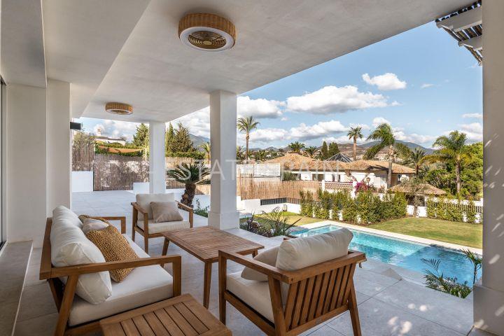 Новая, меблированная вилла в Новой Андалусии, Андалусия, Коста-дель-Соль. В вилле площадью 448 кв.м есть 5 спальных комнат, 5 санузлов, гостиная и кухня.