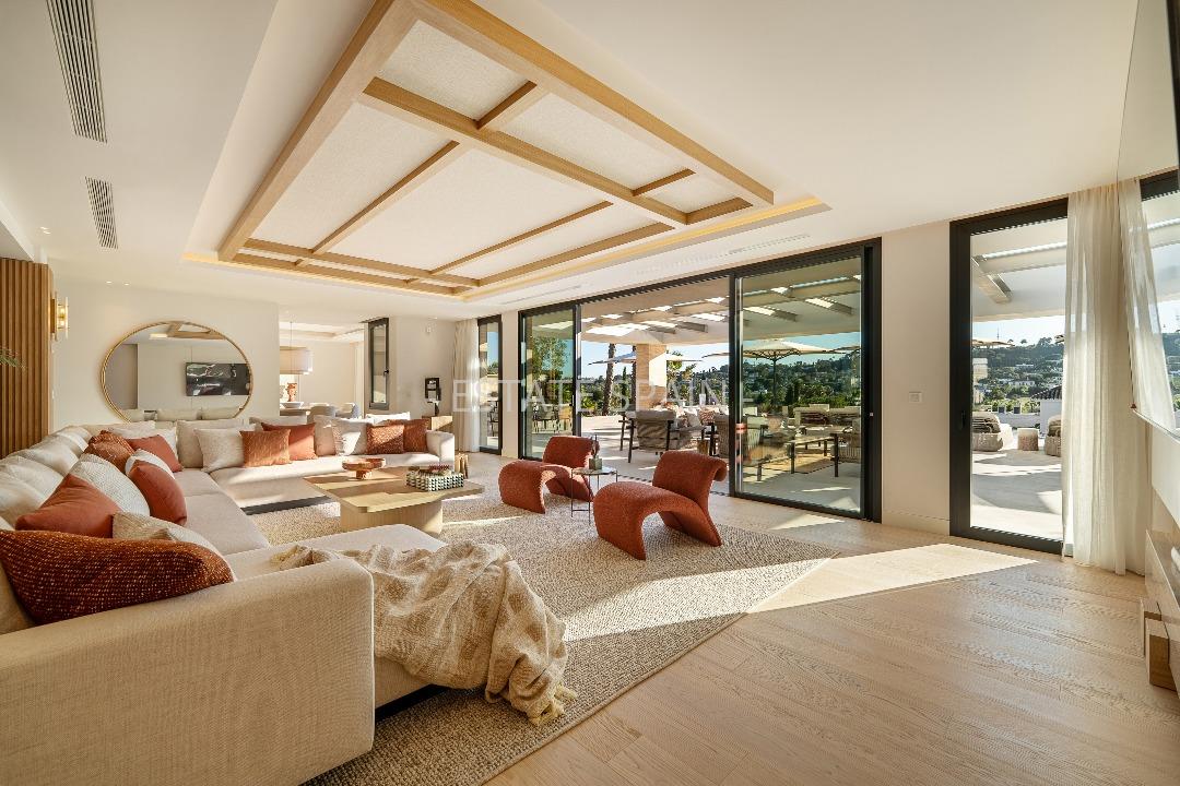 Новая, меблированная вилла в Марбелье, Андалусия, Коста-дель-Соль. В вилле площадью 840 кв.м есть 6 спальных комнат, 6 санузлов, гостиная и кухня.