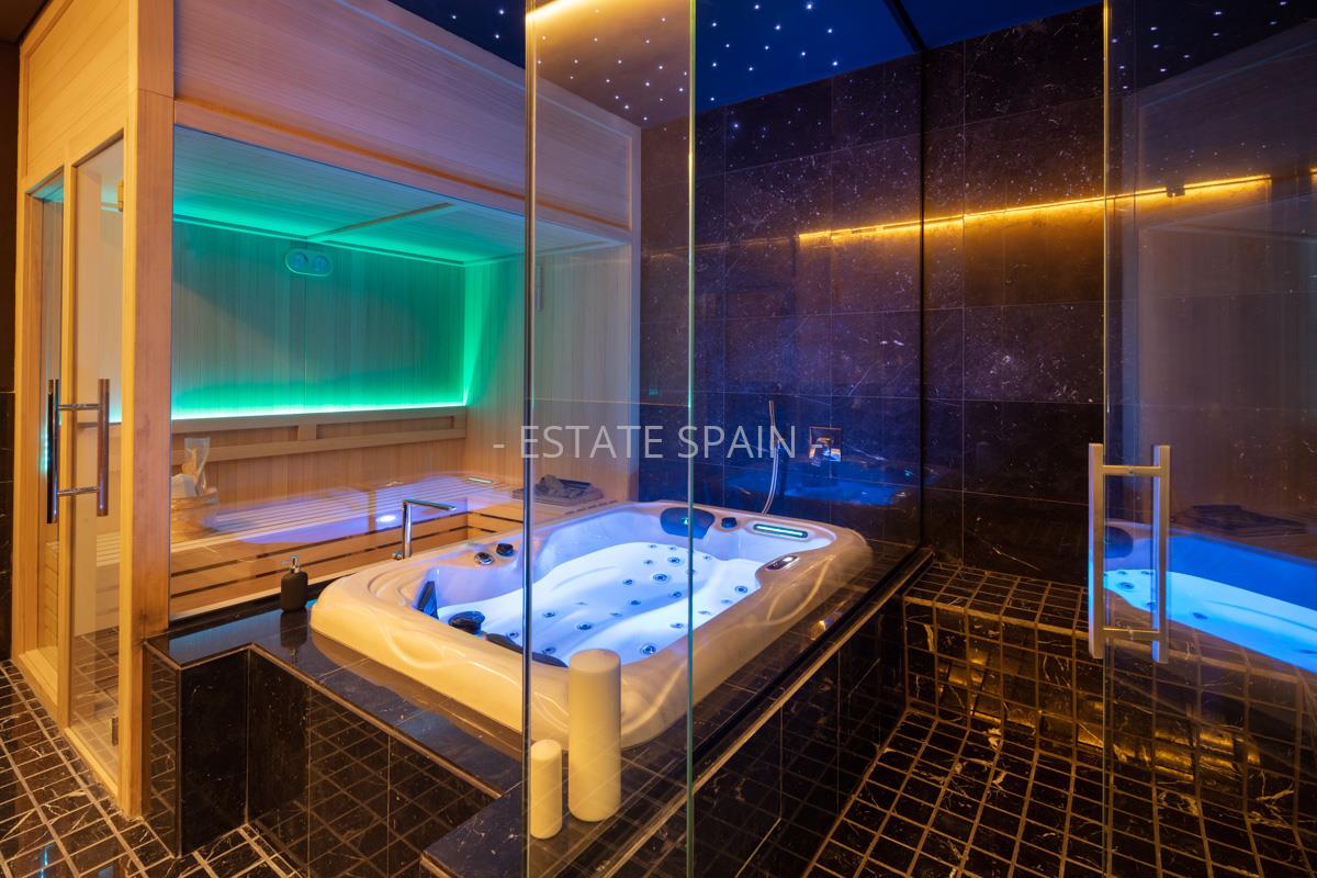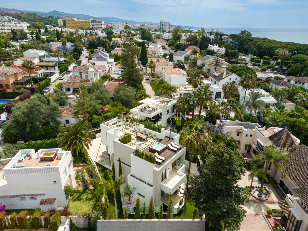 Новая, меблированная вилла недалеко от моря в Марбелье, Андалусия, Коста-дель-Соль. В вилле площадью 470 кв.м есть 5 спальных комнат, 6 санузлов, гостиная и кухня.