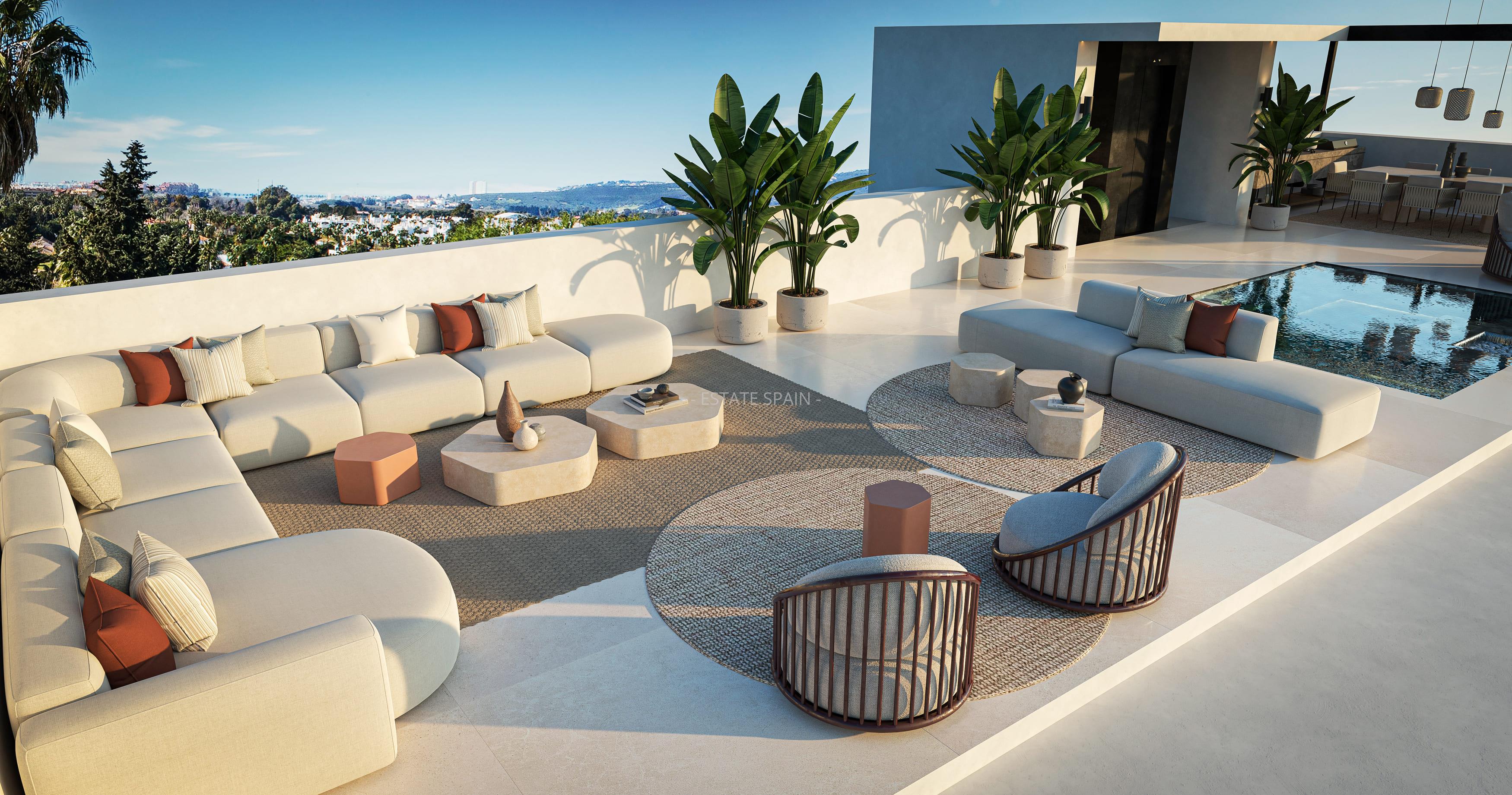 Новая, меблированная вилла недалеко от моря в Эстепоне, Андалусия, Коста-дель-Соль. В вилле площадью 581 кв.м есть 4 cпальни, 4 санузла, гостиная и кухня.