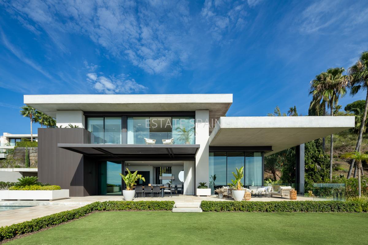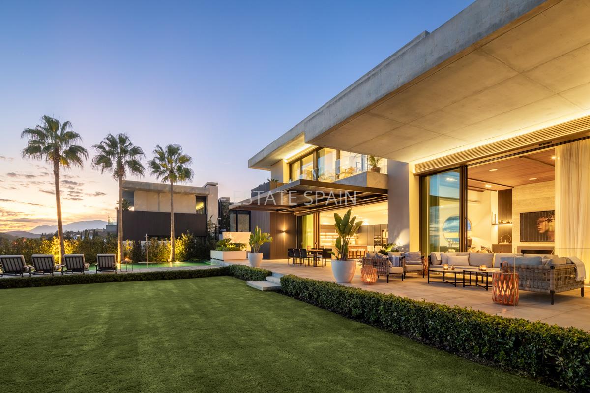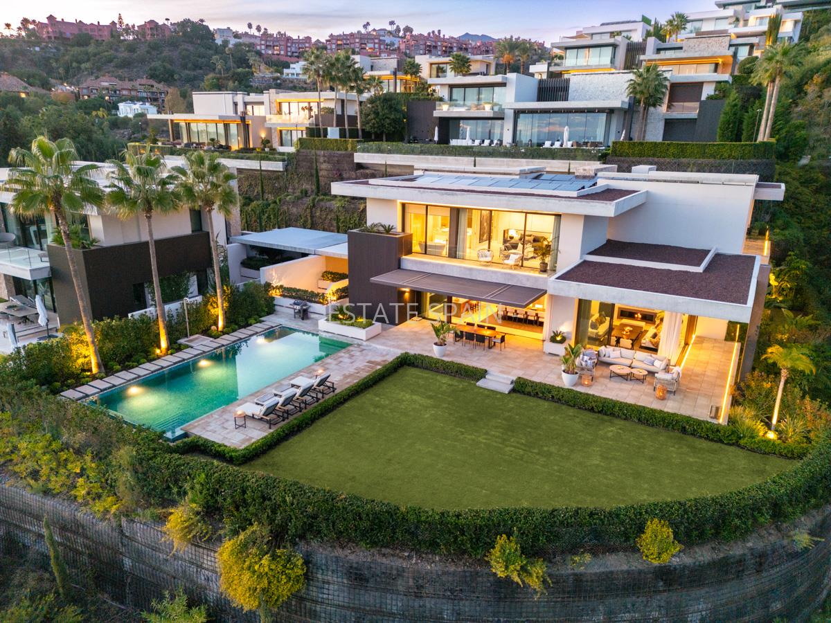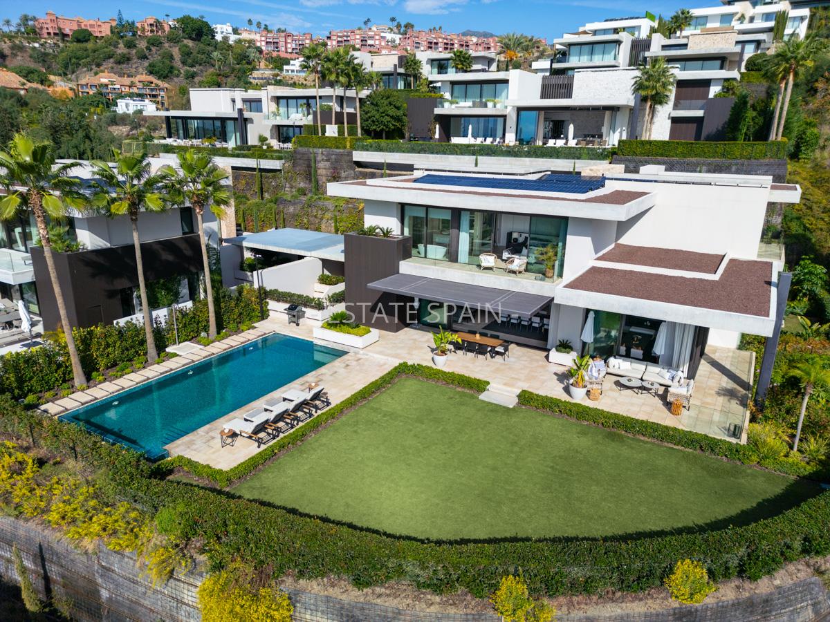 Новая, меблированная вилла в Бенаависе, Андалусия, Коста-дель-Соль. В вилле площадью 630 кв.м есть 6 спальных комнат, 7 санузлов, гостиная и кухня. Из окон открывается чудесный вид на море. На территории есть сад.