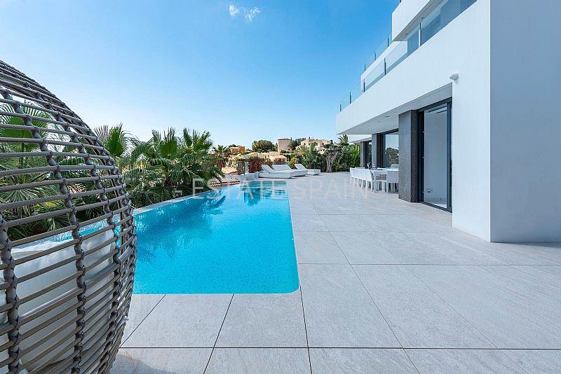 Новая, меблированная вилла недалеко от моря в Кальпе, Коста Бланка. В вилле площадью 426 кв.м есть 4 cпальни, 4 санузла, гостиная и кухня.