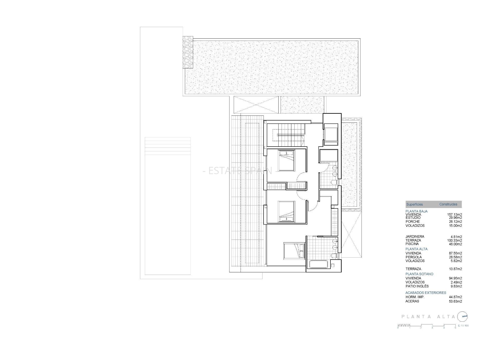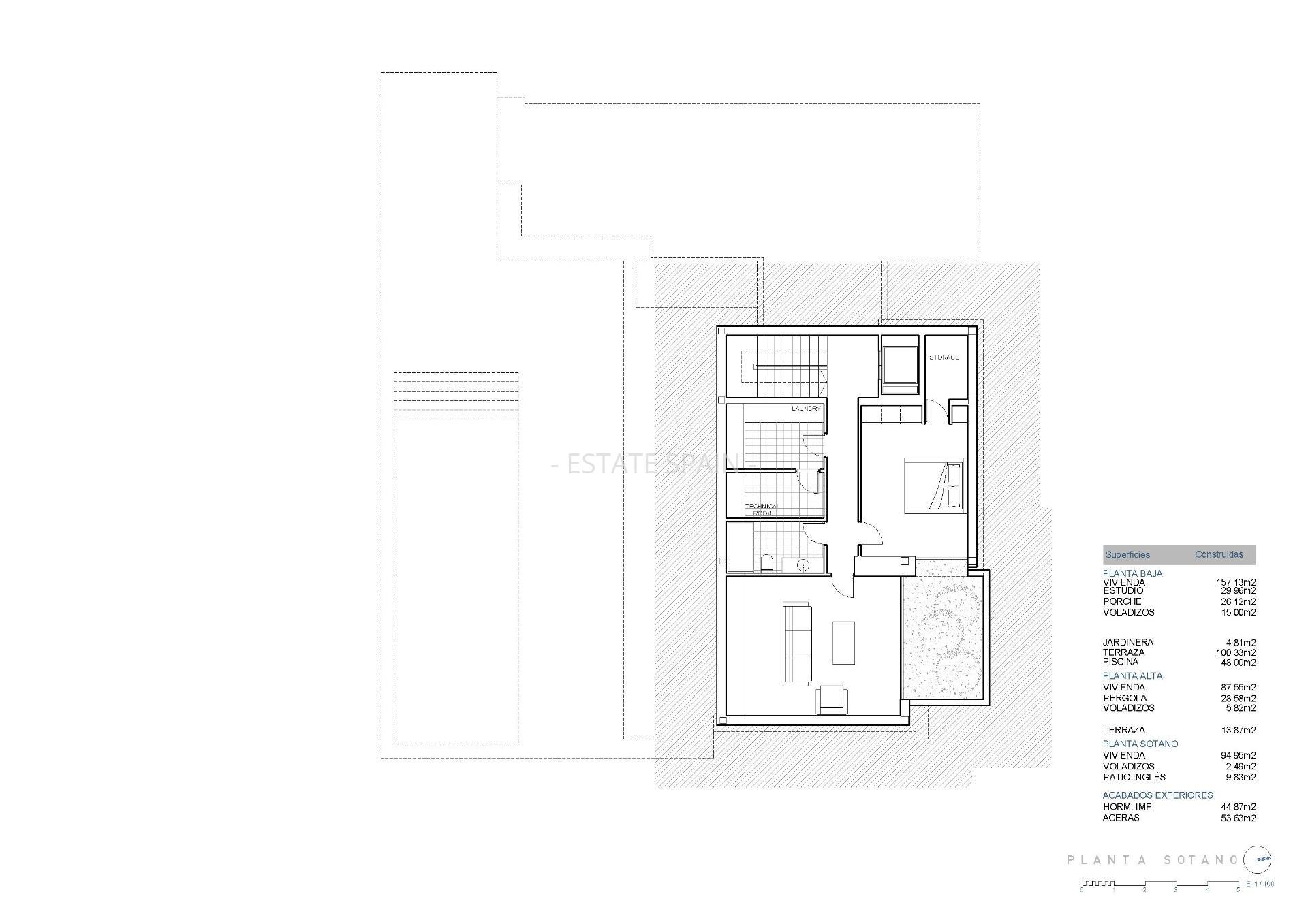 Новая вилла в Теуладе, Коста Бланка. В вилле площадью 395 кв.м есть 6 спальных комнат, 5 санузлов, гостиная и кухня.